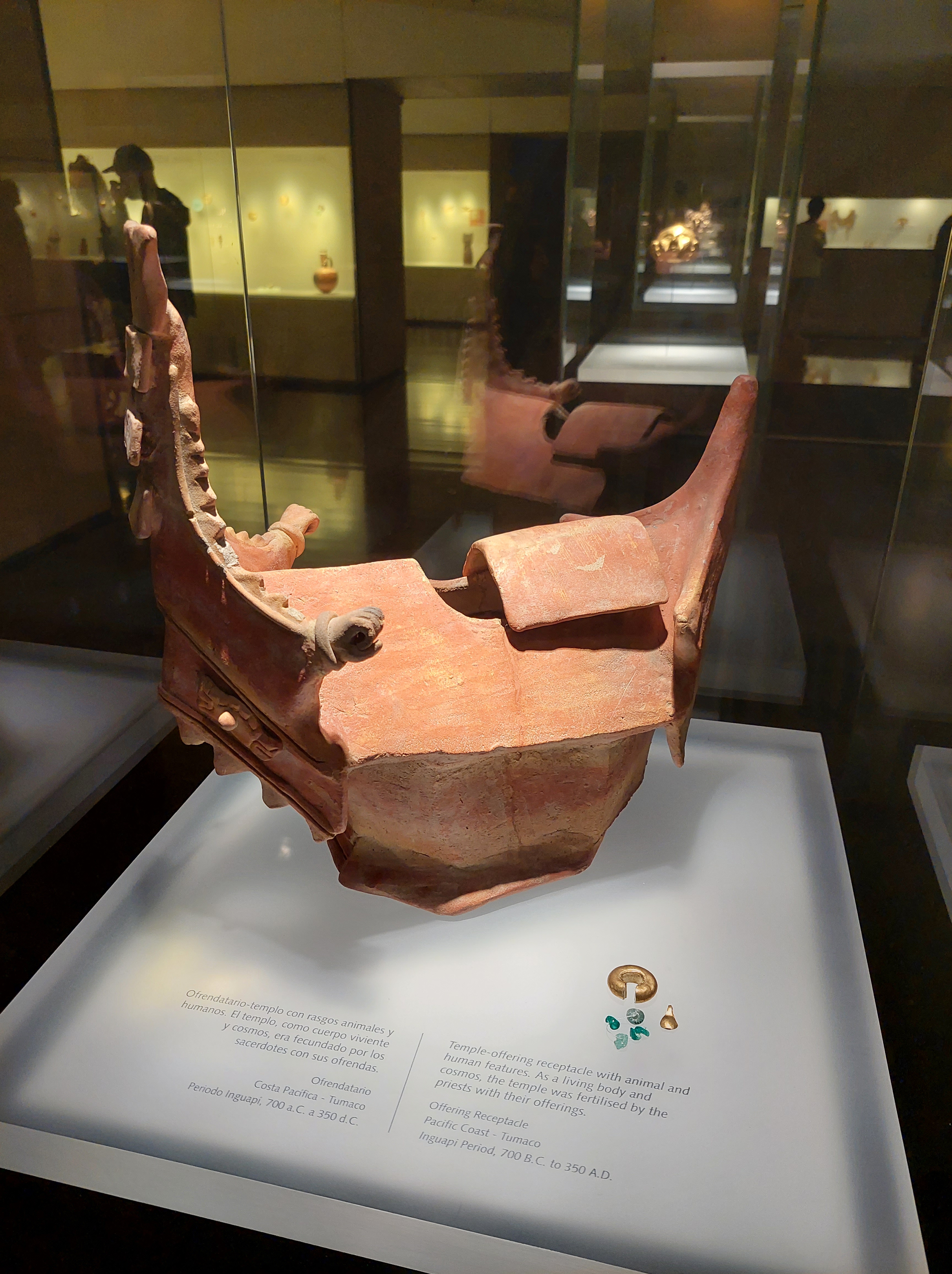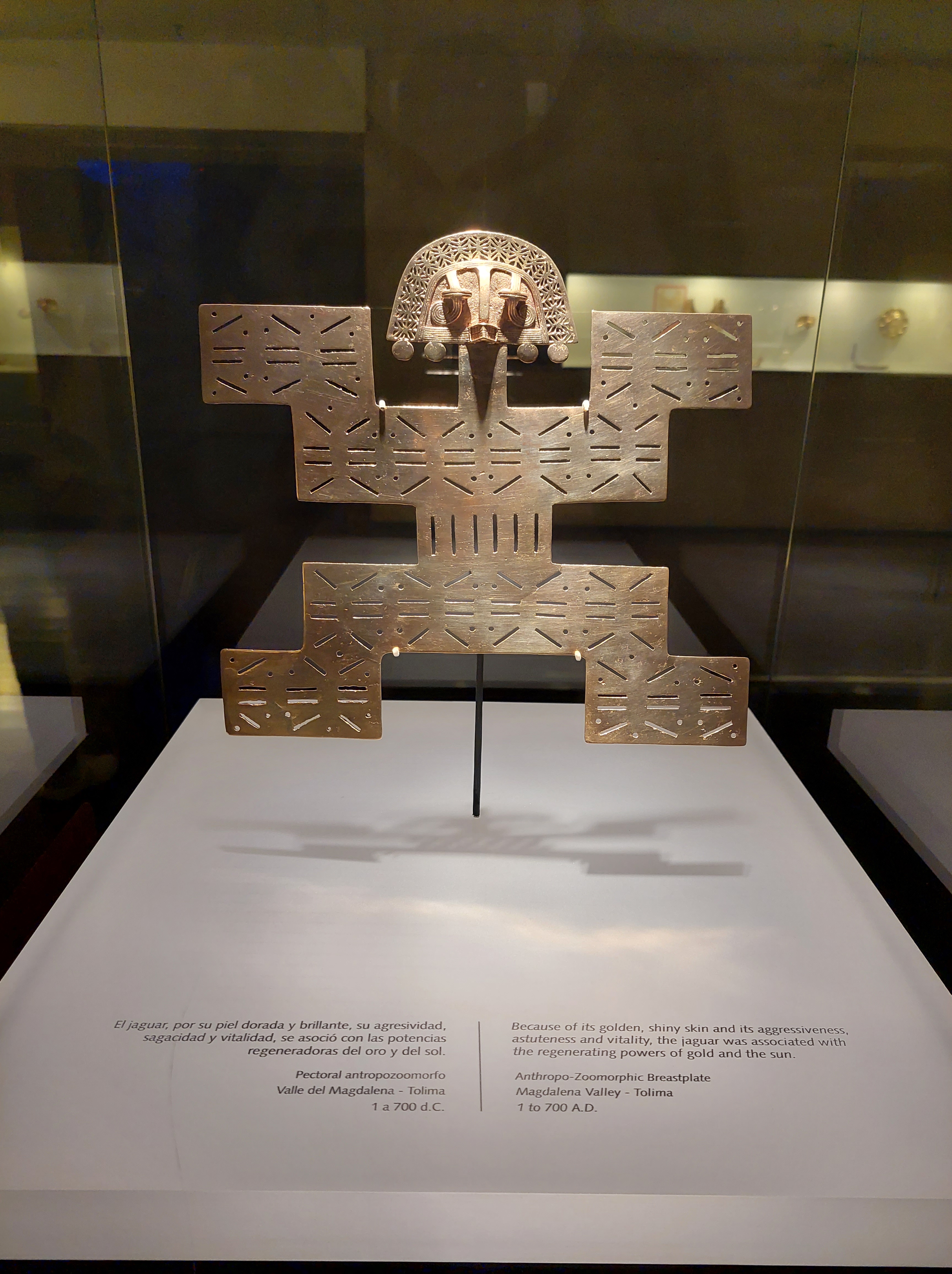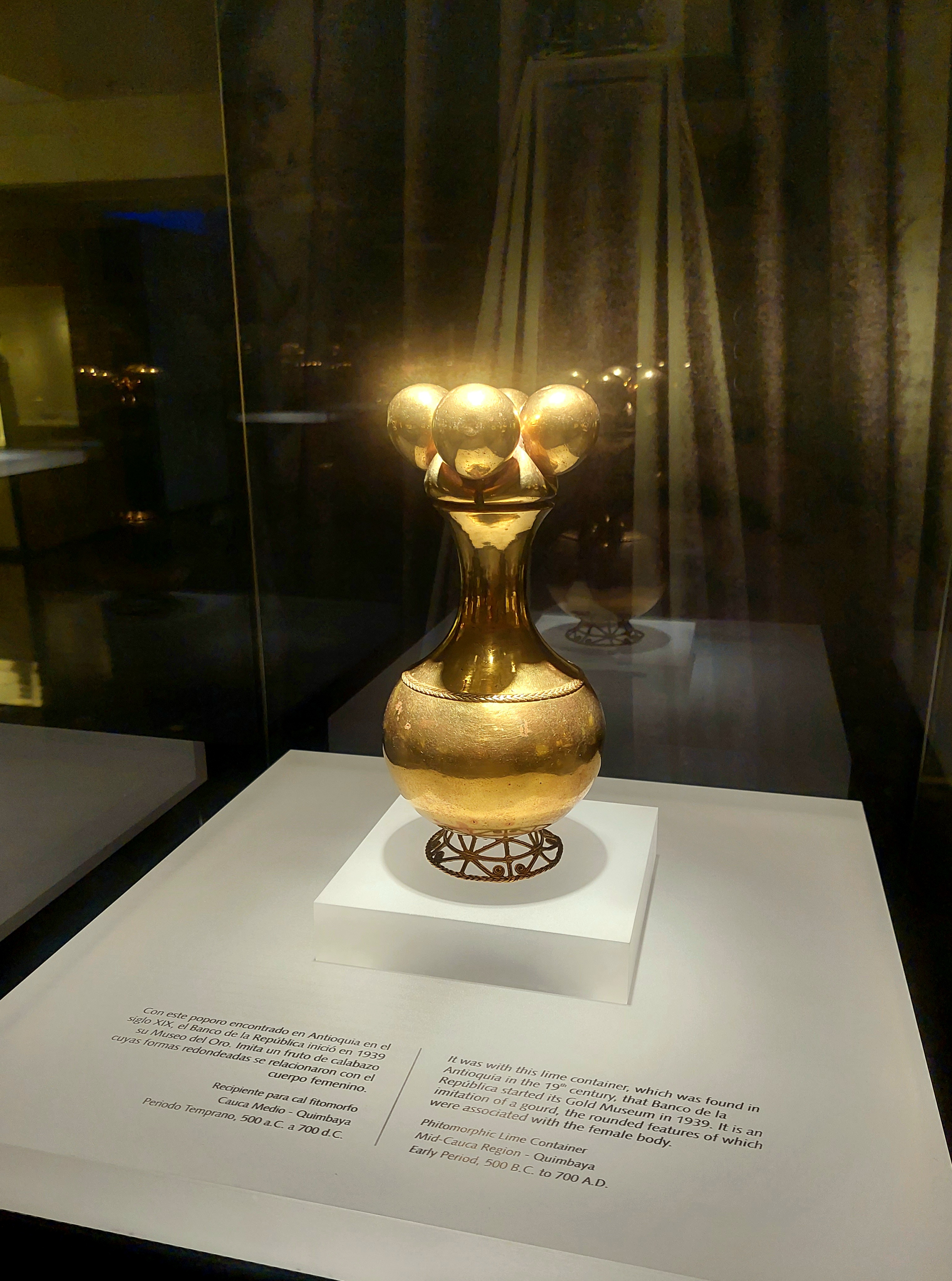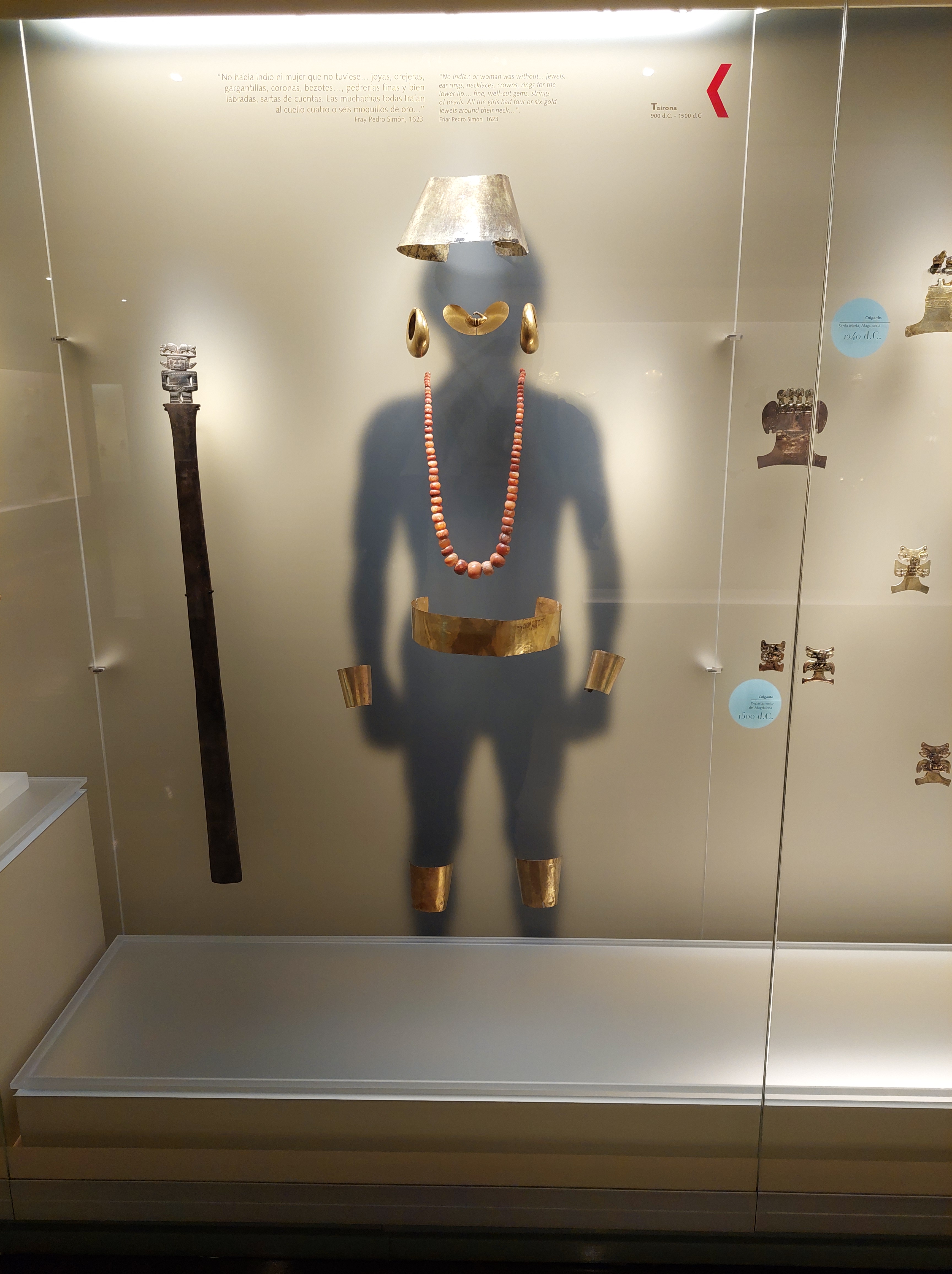 Mit mehr als 35.000 Goldobjekten aus der präkolumbianischen Zeit ist es die Weltweit größte Sammlung ihrer Art. Auf mehreren Stockwerken wird hier die Geschichte der Edelmetalle vorgestellt, von der ersten Besiedelung vor über 15.000 Jahren bis zur Eroberung des Kontinents durch Spanien.