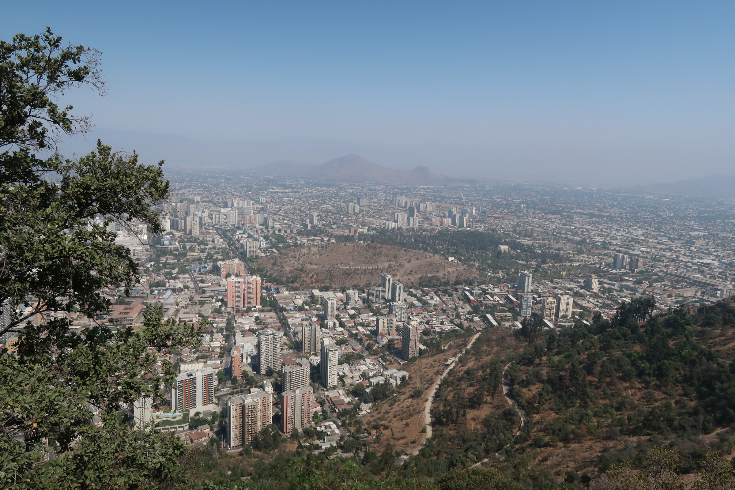 Möchte man Santiago von oben sehen hatan mehrere Möglichkeiten. Die einfachste: man nimmt den Lift um auf den höchsten Wolkenkratzer Südamerikas zu kommen. Vom Aussichtsdeck des Gran Torre Santiago auf rund 260 Meter kann man ganz Santiago überblicken – sofern es der Smog zulässt. Die Stadt liegt nämlich, ähnlich wie Graz, in einem Becken, was dazu führt daß sich die schmutzige Luft oft aufstaut.