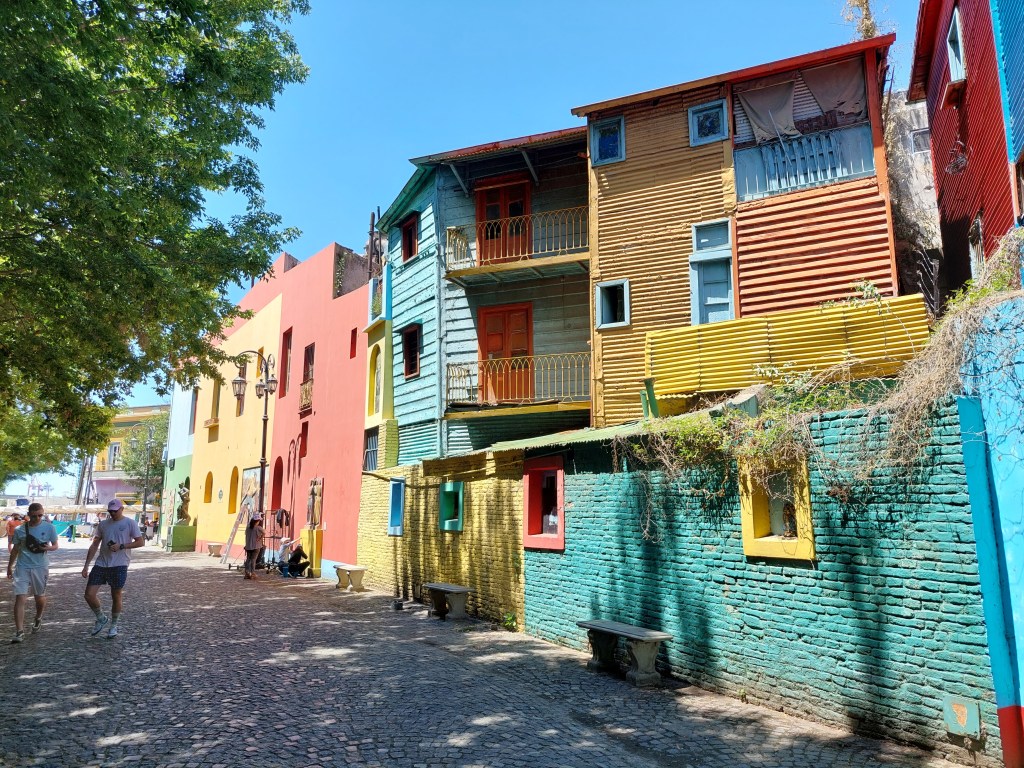 Dann geht es in das Herz von La Boca, den Caminito, eine Straße und Open Air Museum zugleich. In dieser, von der UNESCO zum Weltkulturerbe erhobenen, Passage findet man noch die traditionellen Gebäude vom Beginn des 20. Jahrhunderts. Ähnlich wie in Valparaíso aus Verpackungsmaterial der unzähligen Schiffe, welche zu dieser Zeit im Hafen von La Boca anlegten, erbaut. Zu seiner Hochzeit war La Boca nach New York der wichtigste Atlantikhafen am Amerikanischen Kontinent.