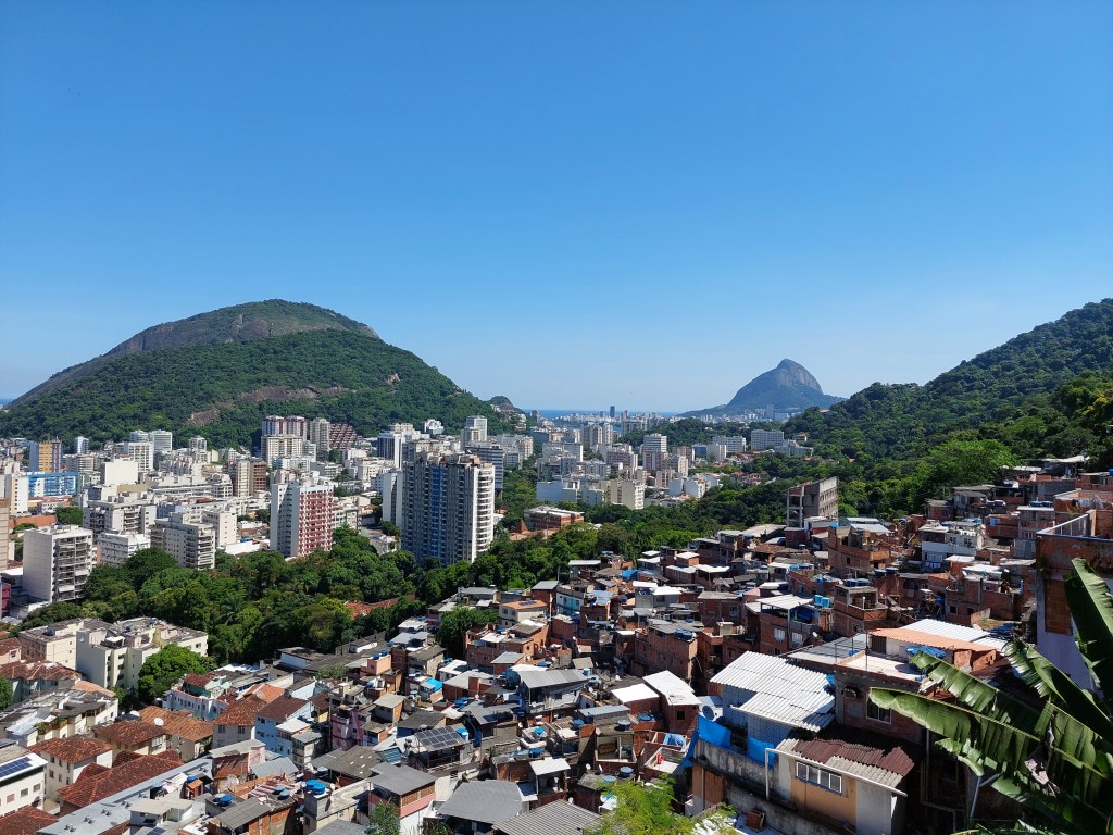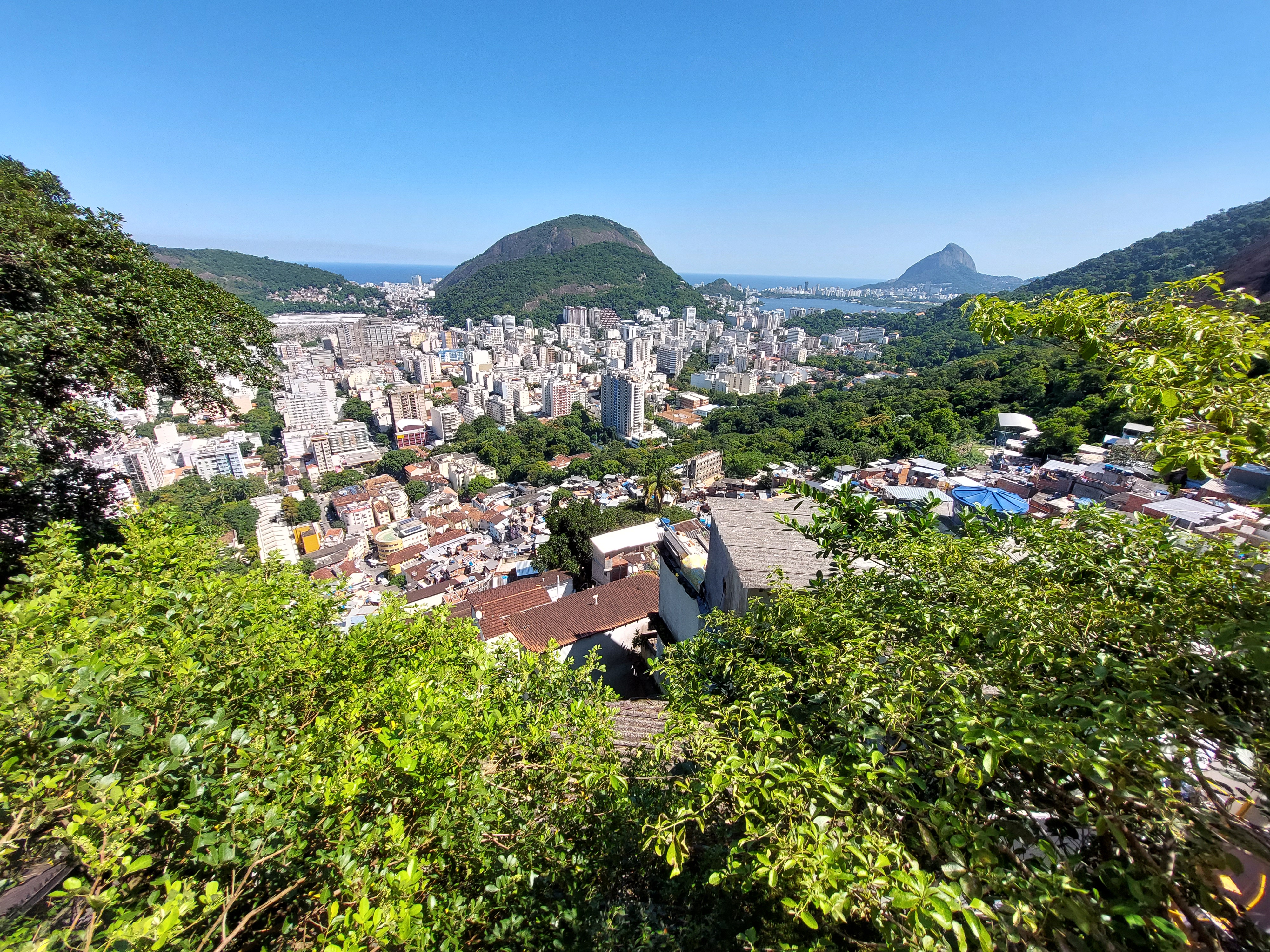 Von ganz oben bietet sich dann ein herrlicher Ausblick über Rio. Hier, im unzugänglich Gelände, hatte die Favela ihren Ursprung. Nach dem Ende der Sklaverei in Brasilien im Jahr 1888 siedelten sich die ehemaligen Sklaven hier an, weit Weg vom Zugriff des Staates. Über die Jahrzehnte wuchs die Favela dann nach unten, bis an die Stadtgrenze von Rio. Doch eines ist geblieben, auch heute noch sind ein Großteil der Bewohner Nachfahren der einstigen Sklaven.