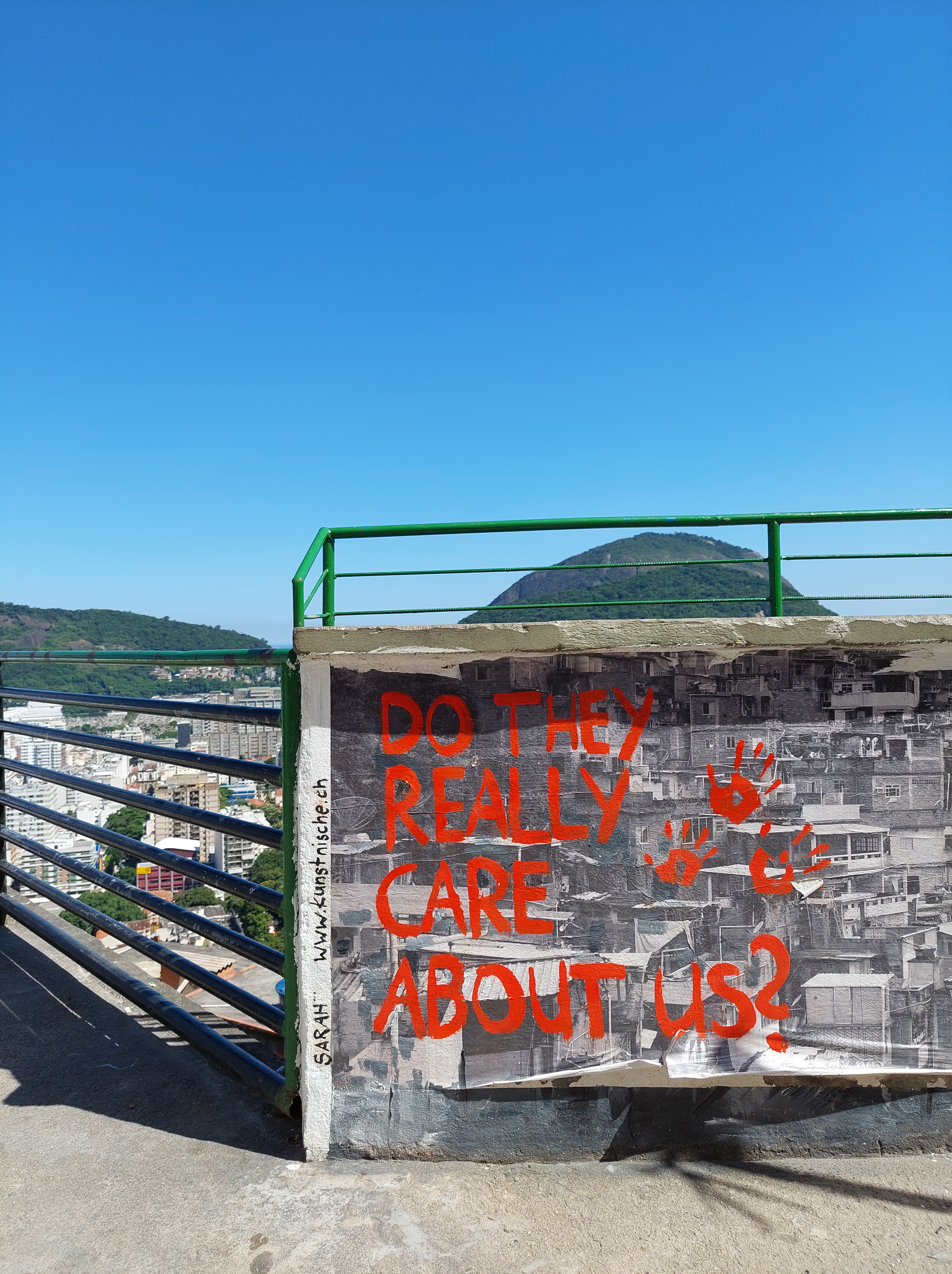 Meine Tour startet am Fuß des sehr steilen Hügels. An sich gibt es eine Zahnradbahn, welche den Aufstieg erleichtert, diese ist im Moment aber außer Betrieb. So geht es über verwinkelte Treppen hinauf zu unserer ersten Station – dem quasi Gemeindeamt der Favela. Die Favela funktioniert nämlich wie eine Stadt innerhalb der Stadt, inklusive einer demokratisch gewählten Vertretung. Zugleich ist hier auch die Stelle, wo die Post für die tausenden Bewohner zugestellt wird. Infrastruktur wie in den andern Stadtteilen sucht man hier vergeblich, Steuern zahlen müssen die Bewohner trotzdem.