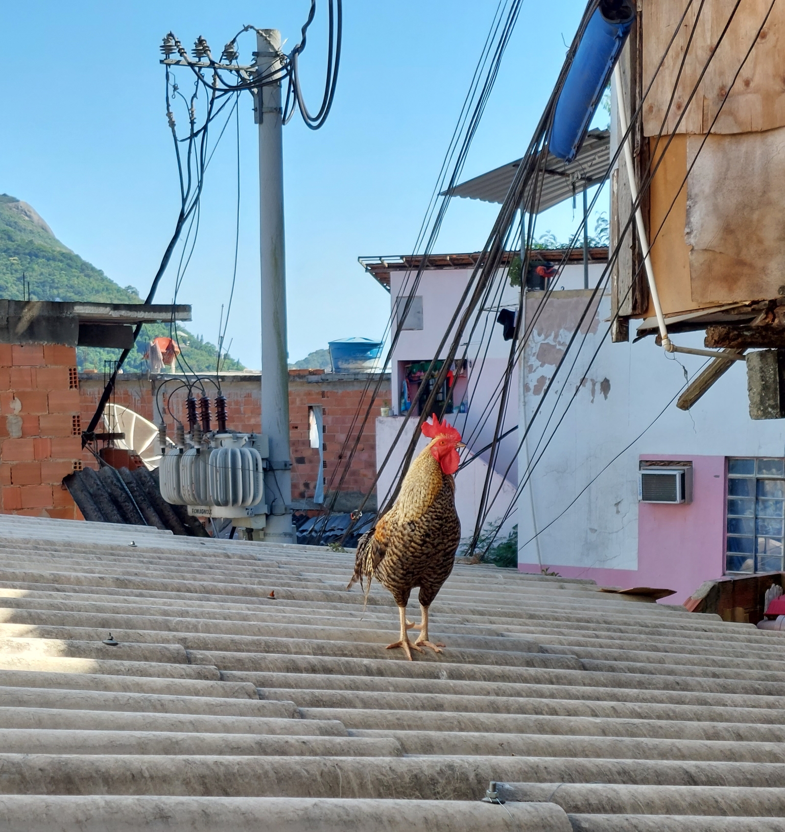Gebaut wird mit allem, was verfügbar ist. Früher war das hauptsächlich Holz, heute Ziegel. Dabei wird versucht wirklich jede Ressource wiederzuverwenden. Oft leben mehrere Generationen in einem Haus, die jüngste fügt einfach ein Stockwerk hinzu. Bauvorschriften gibt es keine, genauso gibt es keine Kanalisation. Das Abwasser wird in oberflächlichen Kanälen ins Tal geleitet, wo es in der Kanalisation von Rio landet. Dementsprechend ist der Gestank mancherorts kaum auszuhalten.