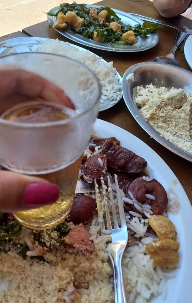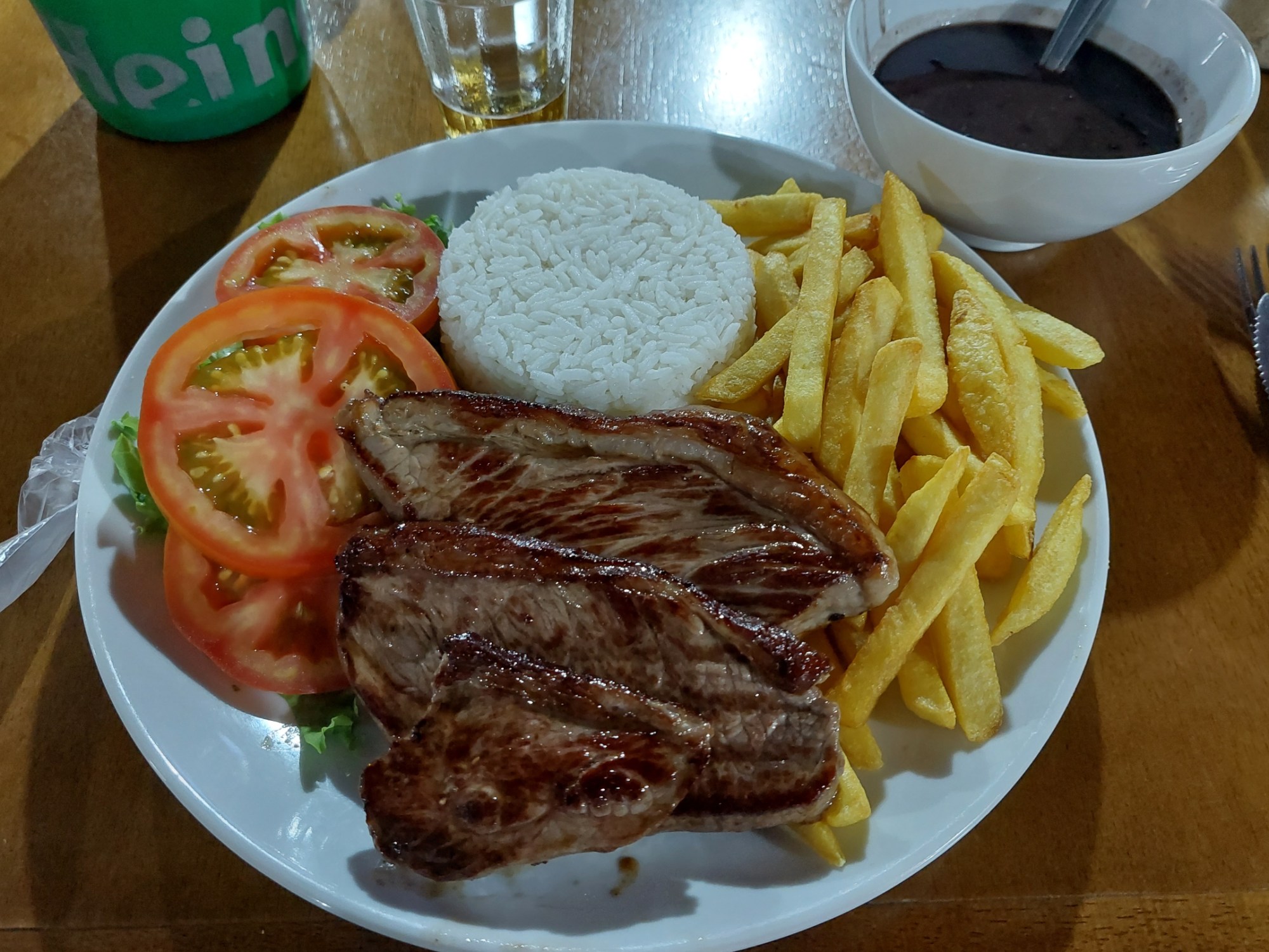 Natürlich darf hier in Brasilien auch gebratenes Rindfleisch in jeglicher Form nicht fehlen. Als Beilage sehr beliebt ist neben Reis und Pommes auch eine Sauce mit Bohnen. Diese sind auch ein Hauptbestandteil des brasilianischen Nationalgerichtes – der Feijoada. Klassisch besteht diese aus einem Eintopf von Fleisch und Bohnen, dazu gibt’s Reis, geröstetes Maniokmehl und Grünkohl mit frittierter Schweinsschwarte.