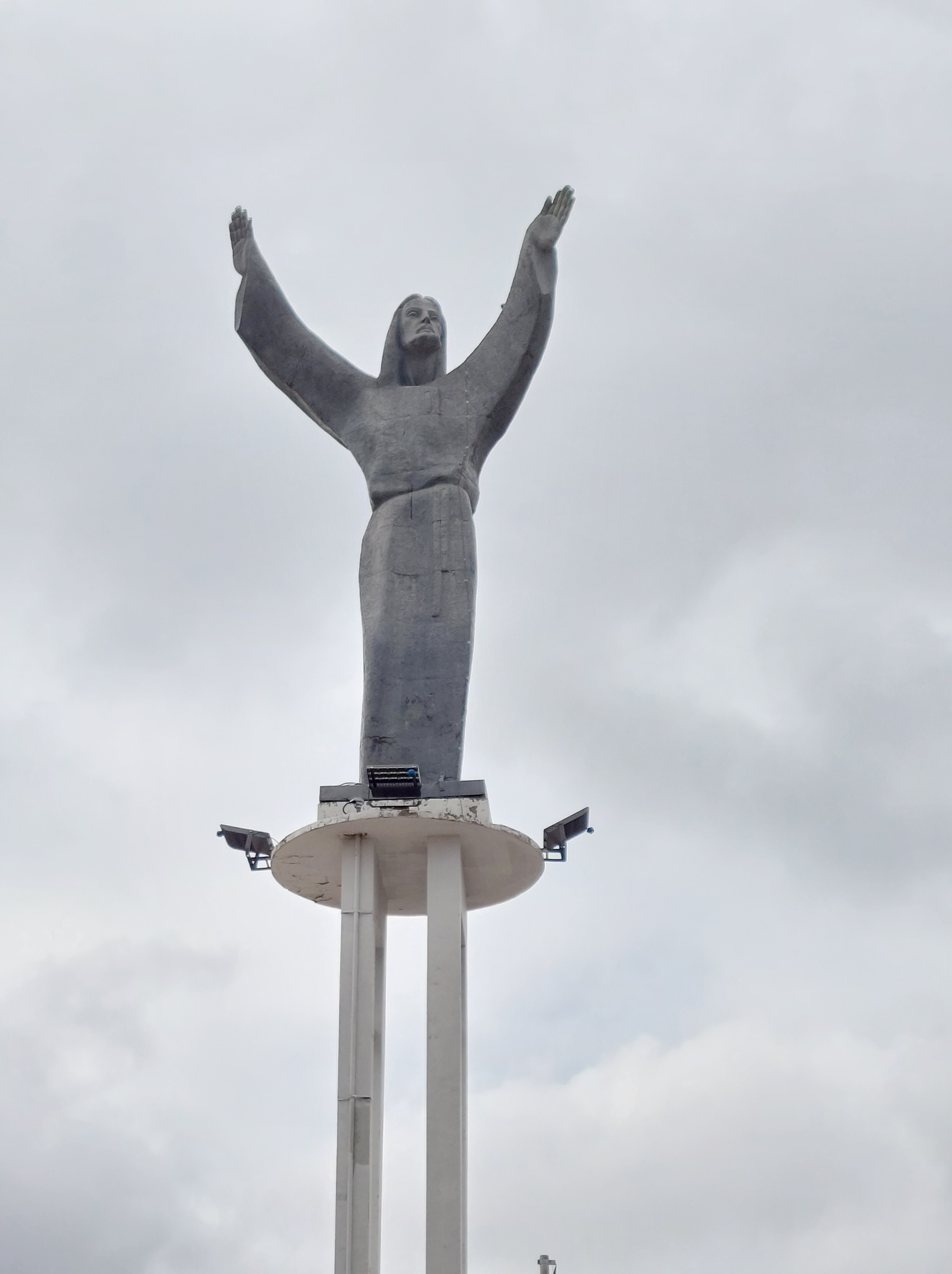 Eine der beliebtesten Sehenswürdigkeiten in Santa Cruz ist die Kathedrale ganz im Zentrum der Stadt. Wer möchte kann für umgerechnet 40 Cent auf einen der Glockentürme hinaufsteigen um einen tollen Überblick über die Stadt zu bekommen. Leider hat es bei meinem Besuch geregnet, weshalb die Weitsicht nicht sehr gut war. Neben einigen Museen gibt es dann auch noch etwas, das ich in Rio schon gesehen habe – eine überdimensionale Christusstatue. Zwar um einiges kleiner als jene in Brasilien, aber trotzdem einen kurzen Abstecher wert.