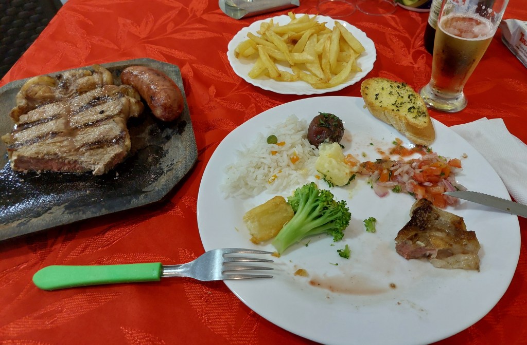 Ich geh lieber auf Nummer sicher und hol mir mein Abendessen in einem der vielen Restaurants. Besonders beliebt sind hier die Churrascarias. Diese Restaurants servieren gebratenes Fleisch, begleitet von einem Salat- und Beilagenbuffet. Vor allem am Wochenende sind diese Lokale gut gefüllt.
