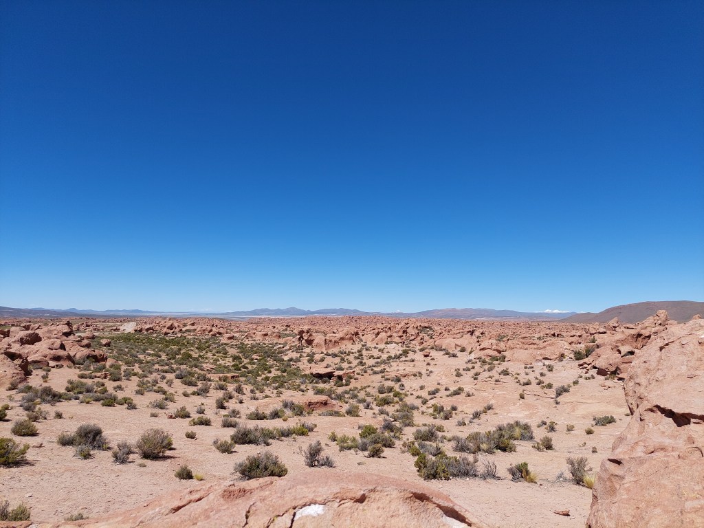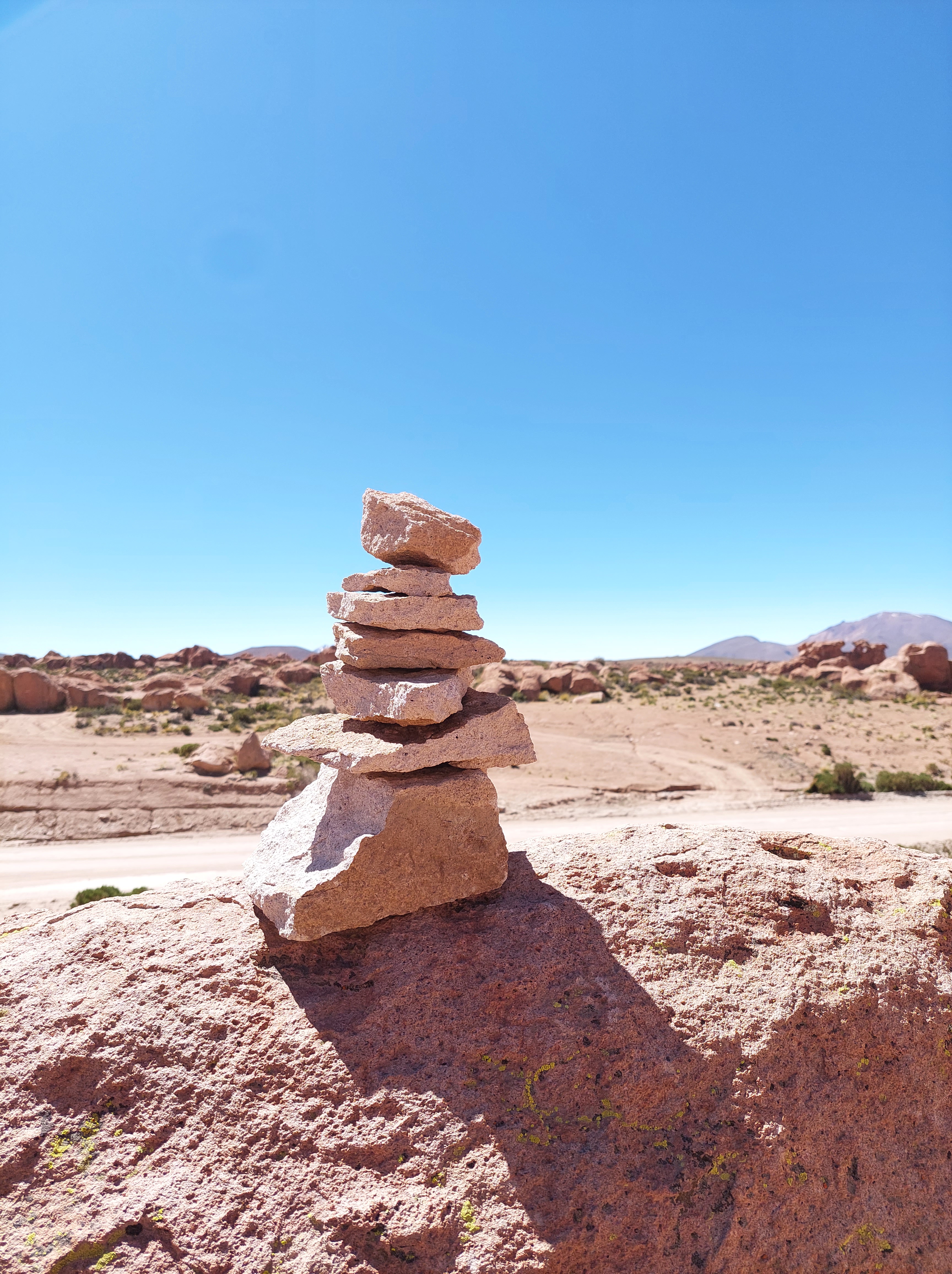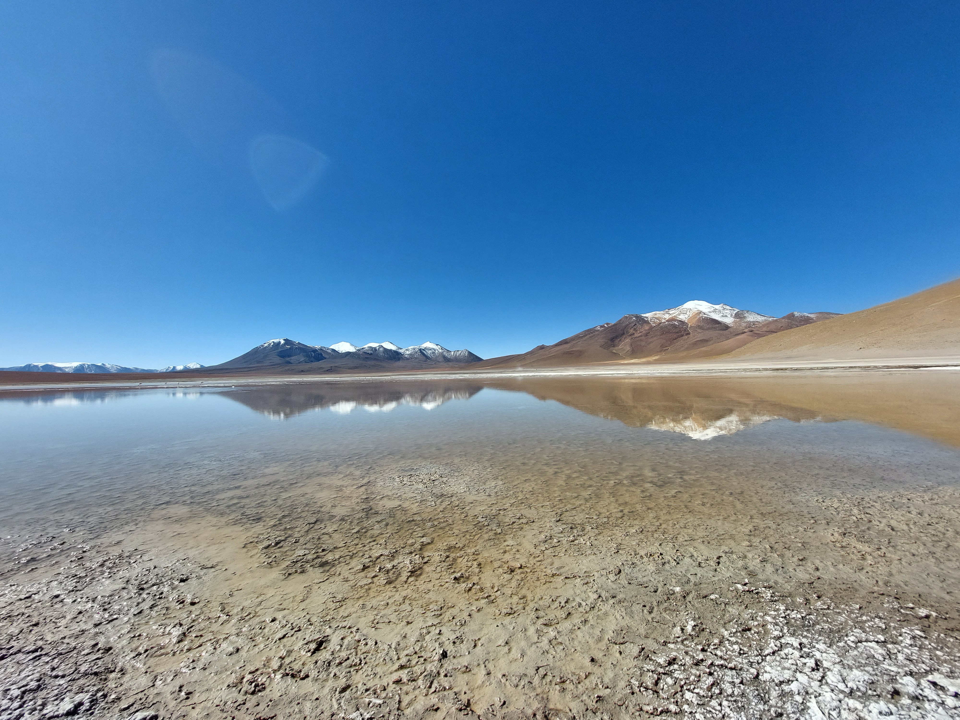 Frisch gestärkt geht es weiter, einzig unsere Vegane Teilnehmerin aus Brasilien hat noch Hunger – als vegane Option fürs Mittagessen gab es nämlich ein leckeres Omlett. Es geht tiefer hinein in die Wüste, nach einem Stopp bei mehr oder weniger interessanten Gesteinsformationen kommen wir zur ersten Lagune des Tages. Insgesamt sind vier Lagunen eingeplant und an allen soll es Flamingos zu sehen geben.