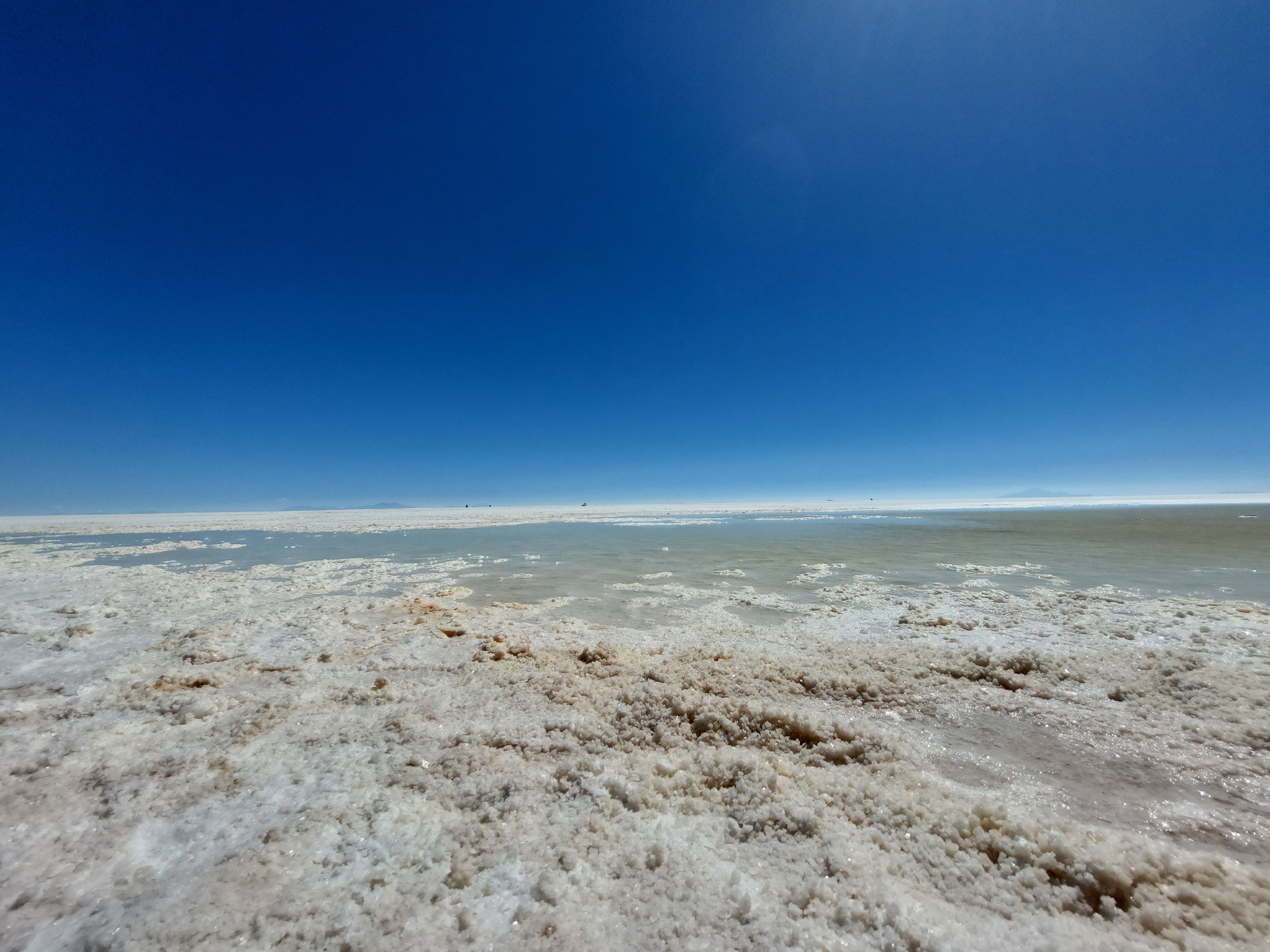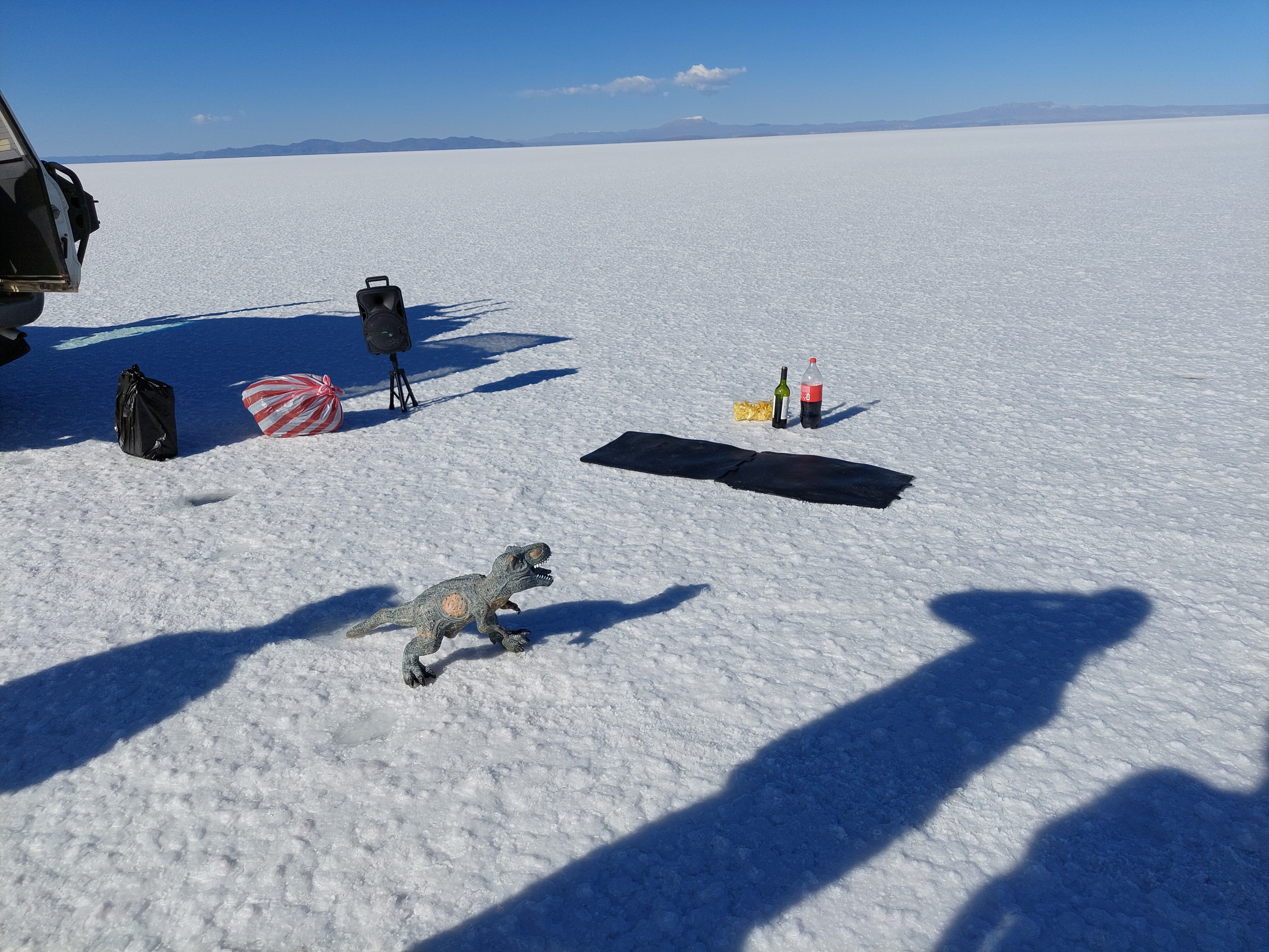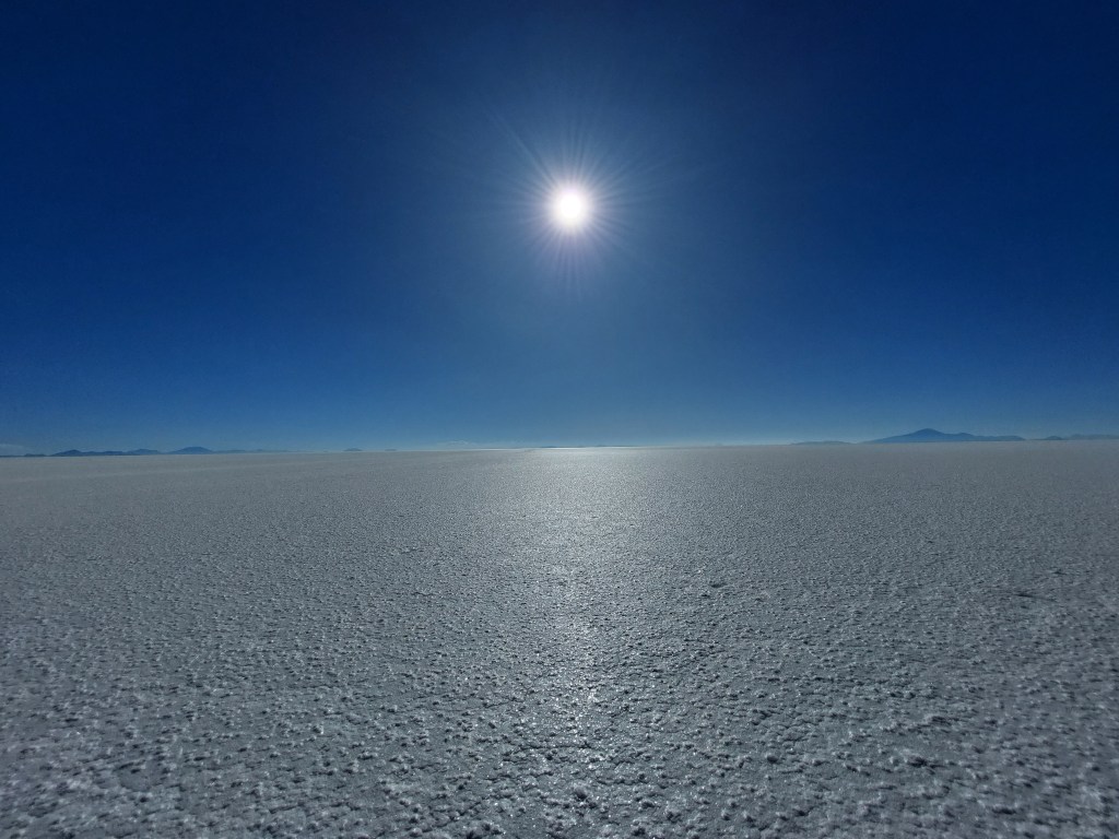 Am dritten Tag unserer Tour steht das absolute Highlight auf dem Programm, die Salar de Uyuni. Mit einem Ausmaß von 10.500 Quadratkilometern ist die Salzwüste gut 1000 Quadratkilometer größer als Kärnten. Vor rund 10.000 Jahren war an ihrer Stelle noch ein See, als dieser austrocknete blieben unvorstellbare Mengen an Salz übrig. Teilweise reicht die Salzschicht über 200 Meter tief.