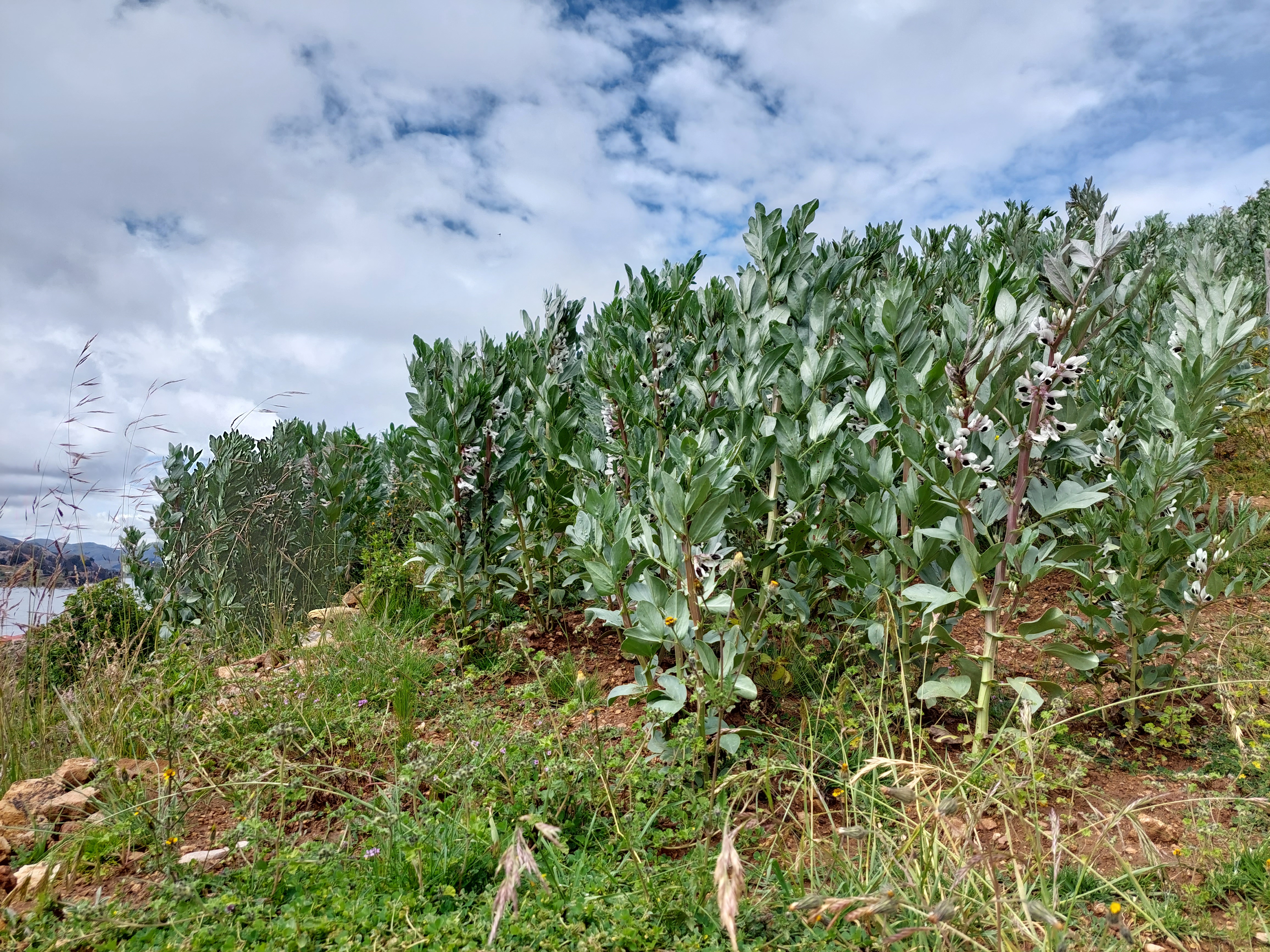 Unterwegs warten immer wieder einheimische Cholitas – Frauen in der Traditionellen Kleidung – welche Souvenirs verkaufen. Daneben fällt auch der angenehme Geruch auf – allerhand Kräuter wachsen hier auf terrassenförmig angelegten Feldern.