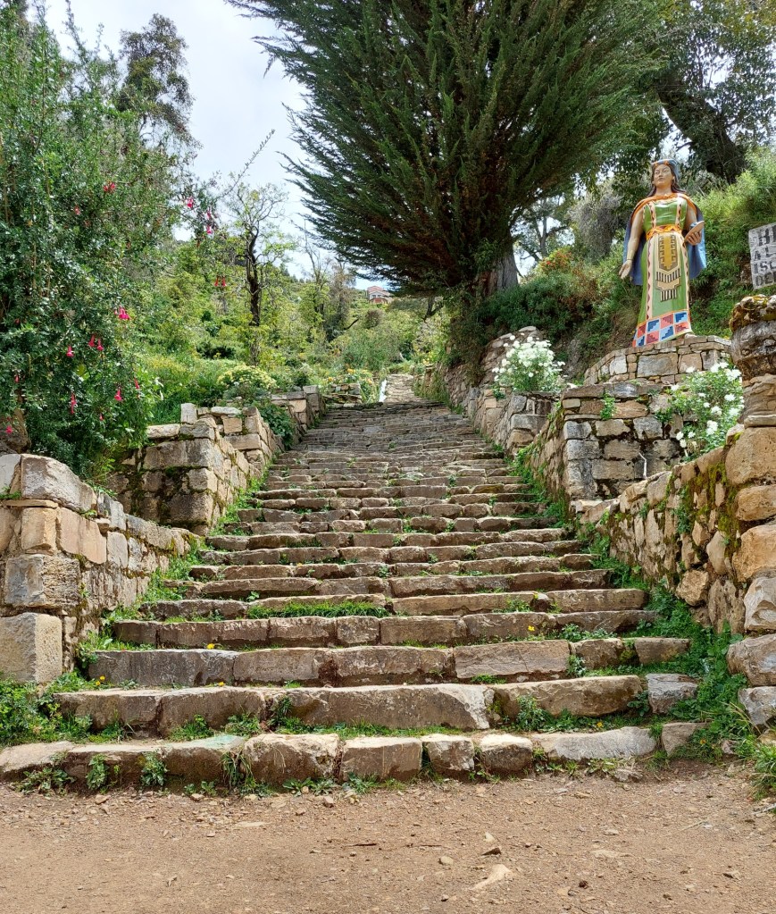 Nach einem Coca-Tee geht es zurück zum Boot, diesmal zum Anlegeplatz in Yumani. Dabei geht es die Inka-Stiegen hinab, ein weiteres Überbleibsel aus der Hochzeit der Inka. Am unteren Ende ist dann auch Eintritt zu bezahlen, denn gratis ist der Besuch auf der Isla del Sol nicht.