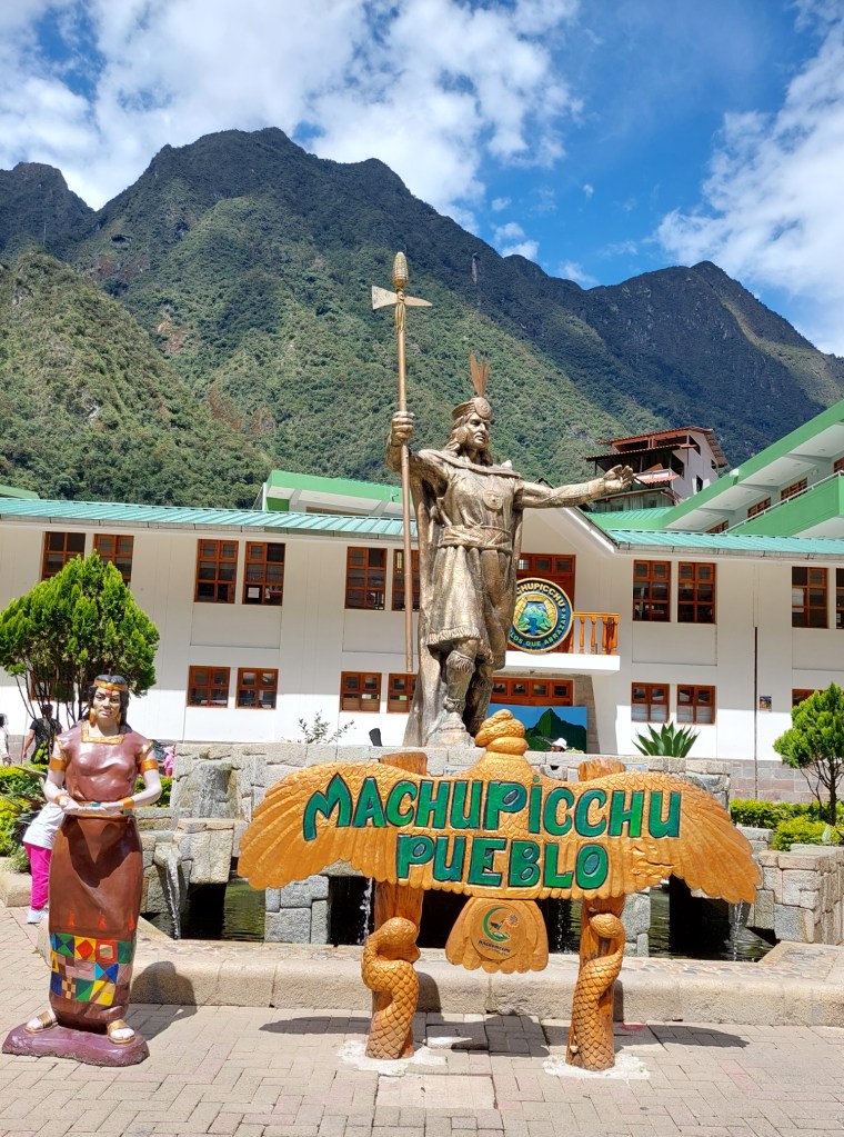 Aguas Calientes selbst lebt vom Tourismus. Das Dorf ist voll mit Restaurants und Hostels, eingerahmt von majestätischen Bergen. Durch den Ort rauscht der Fluss Urubamba, einige Kilometer entfernt gibt es ein Wasserkraftwerk, welches Cusco mit Energie versorgt. Welche Kraft der Fluss entwickeln kann sieht man im Ortskern. Vor einigen Monaten wurde dieses von einem Hochwasser verwüstet, Teile der Gleise wurden weggespült.