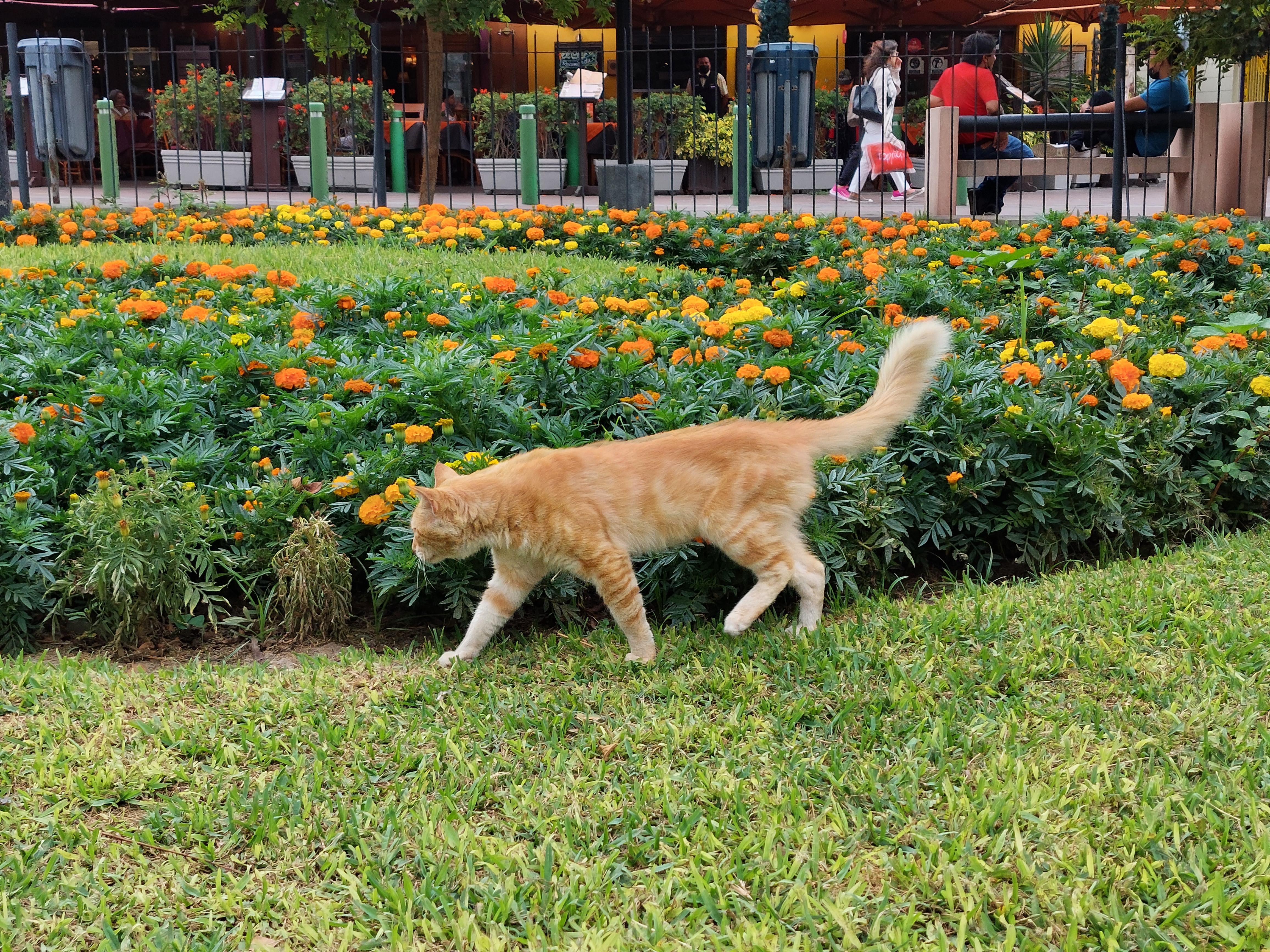 Wie die meisten Touristen habe auch ich mir ein Hotel in Miraflores gebucht. Der Weg ins Zentrum und Retour ist von hier aus sehr unkompliziert – der Stadtbus, welcher eine eigene Fahrspur hat, braucht knapp eine halbe Stunde. In den Parks von Miraflores tummeln sich Bewohner, die ich in dieser Anzahl in Südamerika bisher nicht gesehen hab – Katzen.
