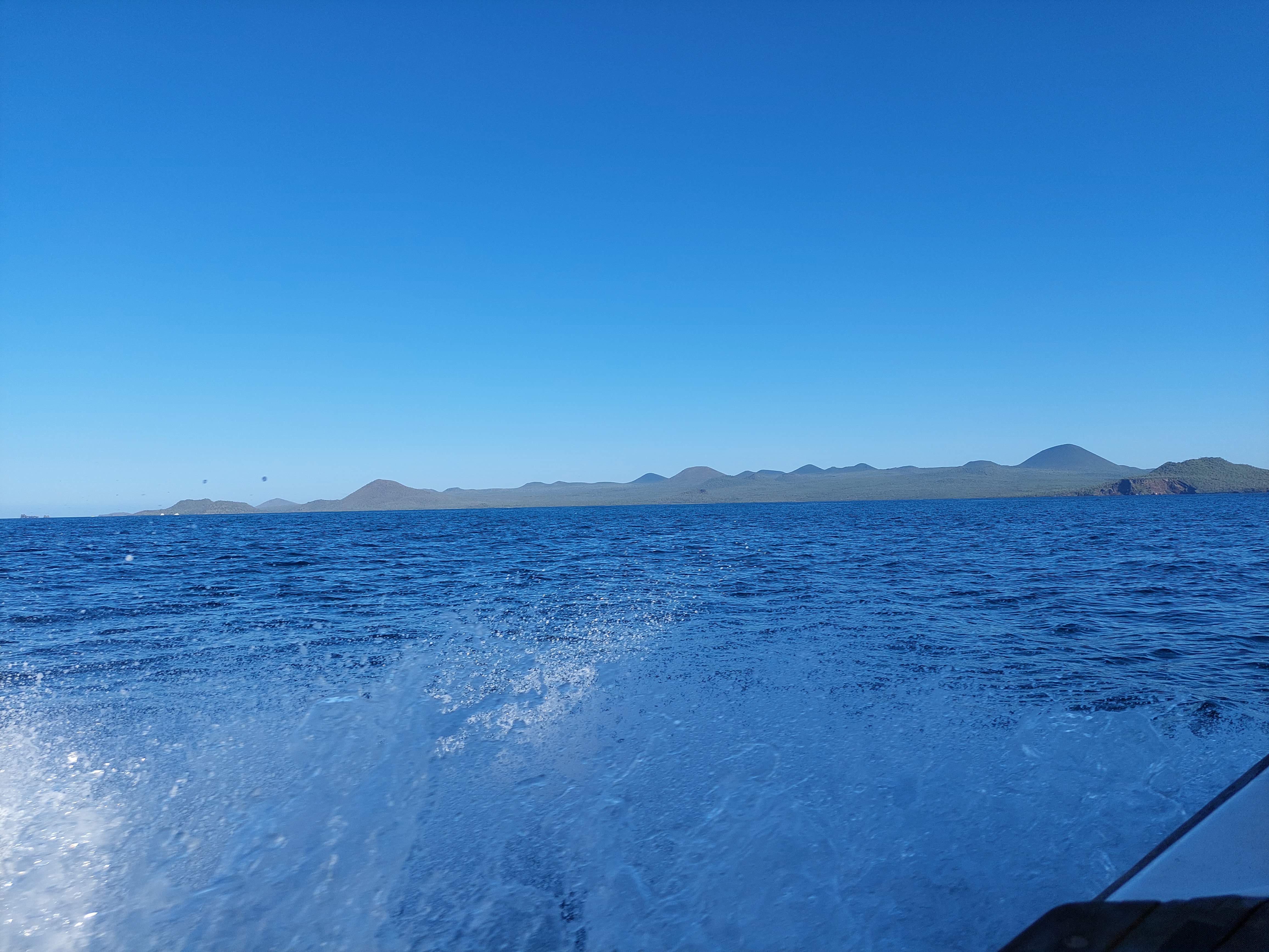 Danach gibt’s ein leichtes Mittagessen, denn es steht eine längere Bootsfahrt auf dem Programm. Mit dem Schnellboot geht es rund 2 Stunden zur etwa 60 Kilometer südlich liegenden Insel Floreana. Vor der Abfahrt können wir im Hafen von Puerto Ayora noch eine große Gruppe Rochen bewundern, während unser Gepäck geprüft wird. Hier auf Galapagos wird großer Wert darauf gelegt, das es zwischen den Inseln zu keiner Kontamination mit dort nicht heimischen Tieren und Pflanzen kommt.