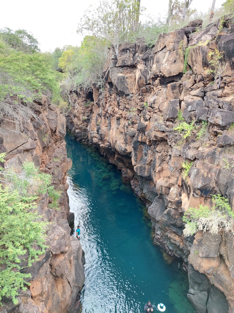 Ziel unserer Wanderung ist Las Grietas, ein Canyon in welchem sich natürliche Swimmingpools gebildet haben. Der Spaziergang dorthin dauert knapp eine halbe Stunde, vorbei an Salzbecken, welche von den Einheimischen bewirtschaftet werden. Der Weg führt über Vulkangestein – die Galapagos Inseln sind vulkanischem Ursprungs. Noch heute gibt es unzählige aktive Vulkane auf den Inseln.