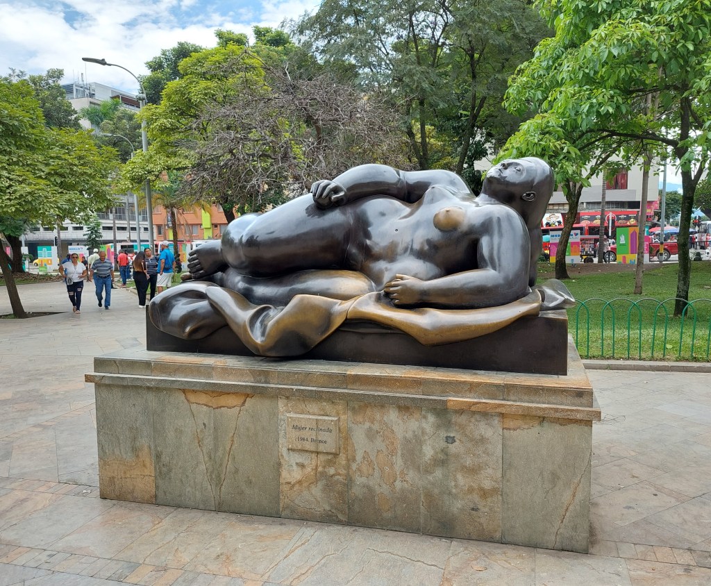 Daneben ist Medellín auch Heimat einer ganzen Menge and Künstlern. Neben Reggaeton-Sängern wie J Balvin oder Karol G sticht vor allem der Maler und Bildhauer Fernando Botero heraus. Im Museo de Antioquía ist ihm ein ganzes Stockwerk gewidmet, in welchem aber leider Fotoverbot herrscht. Glücklicherweise gibt es am Platz vor dem Museum einige seiner Skulpturen zu sehen.