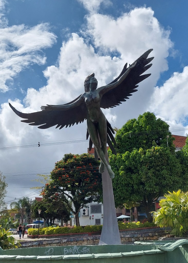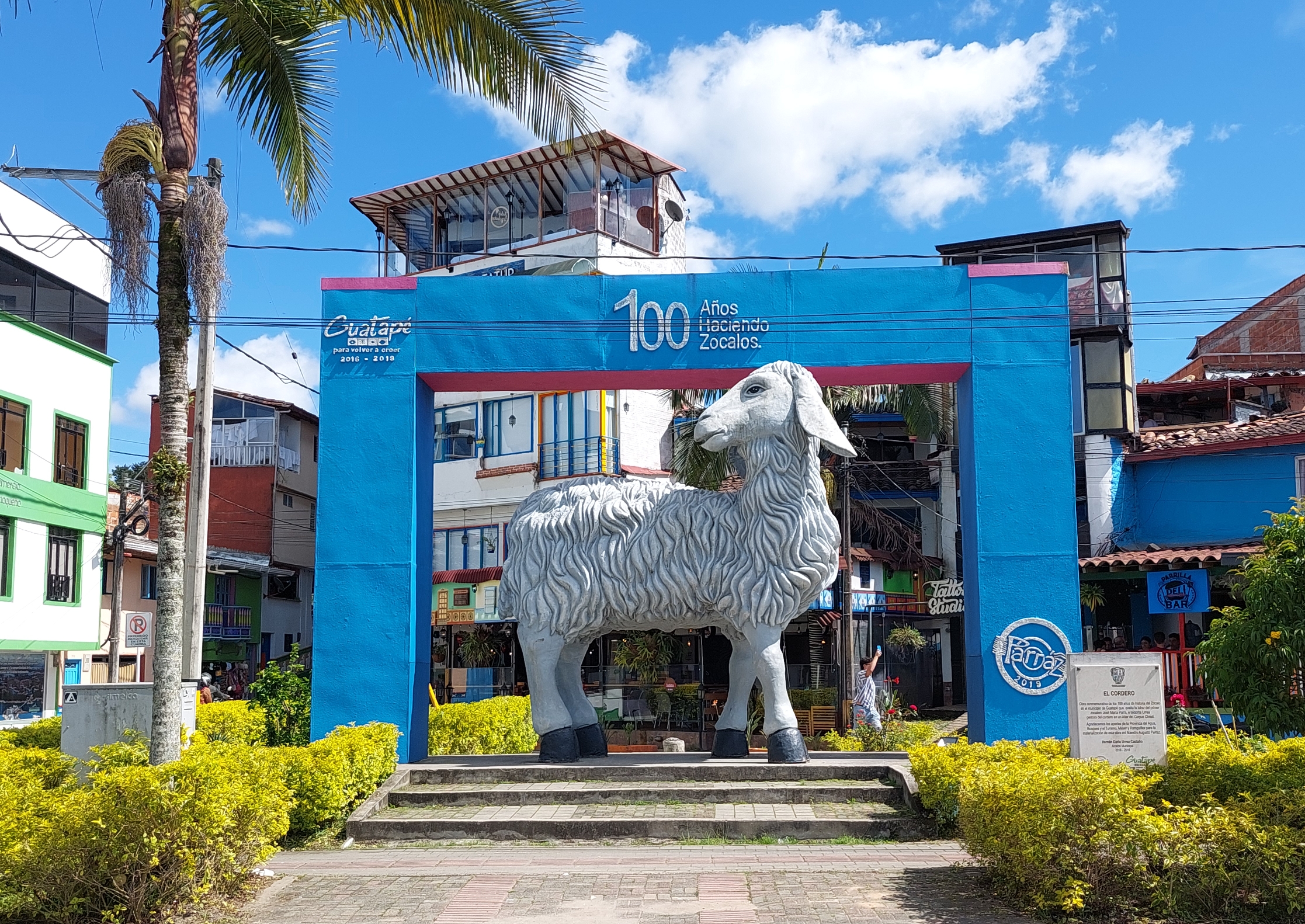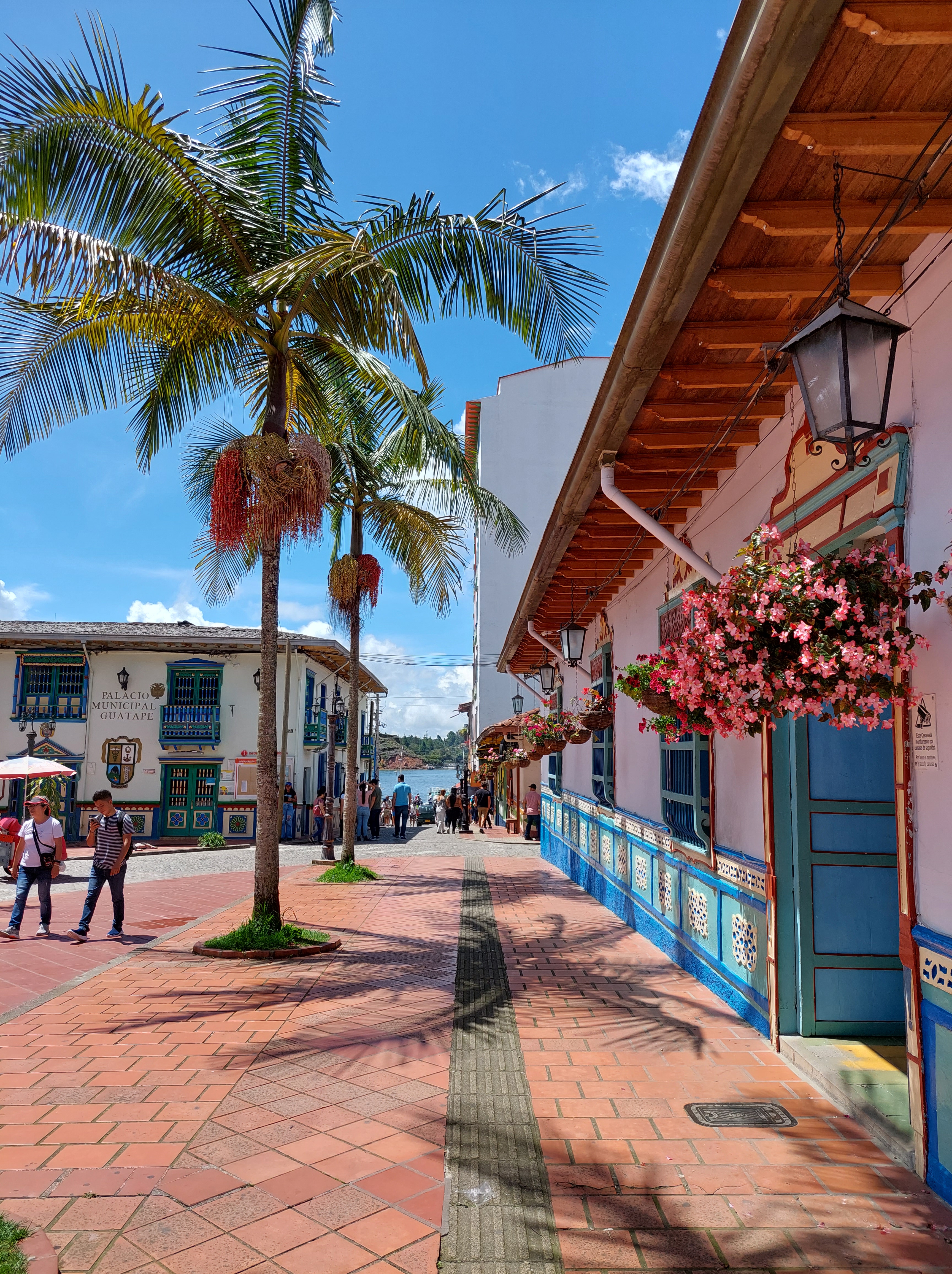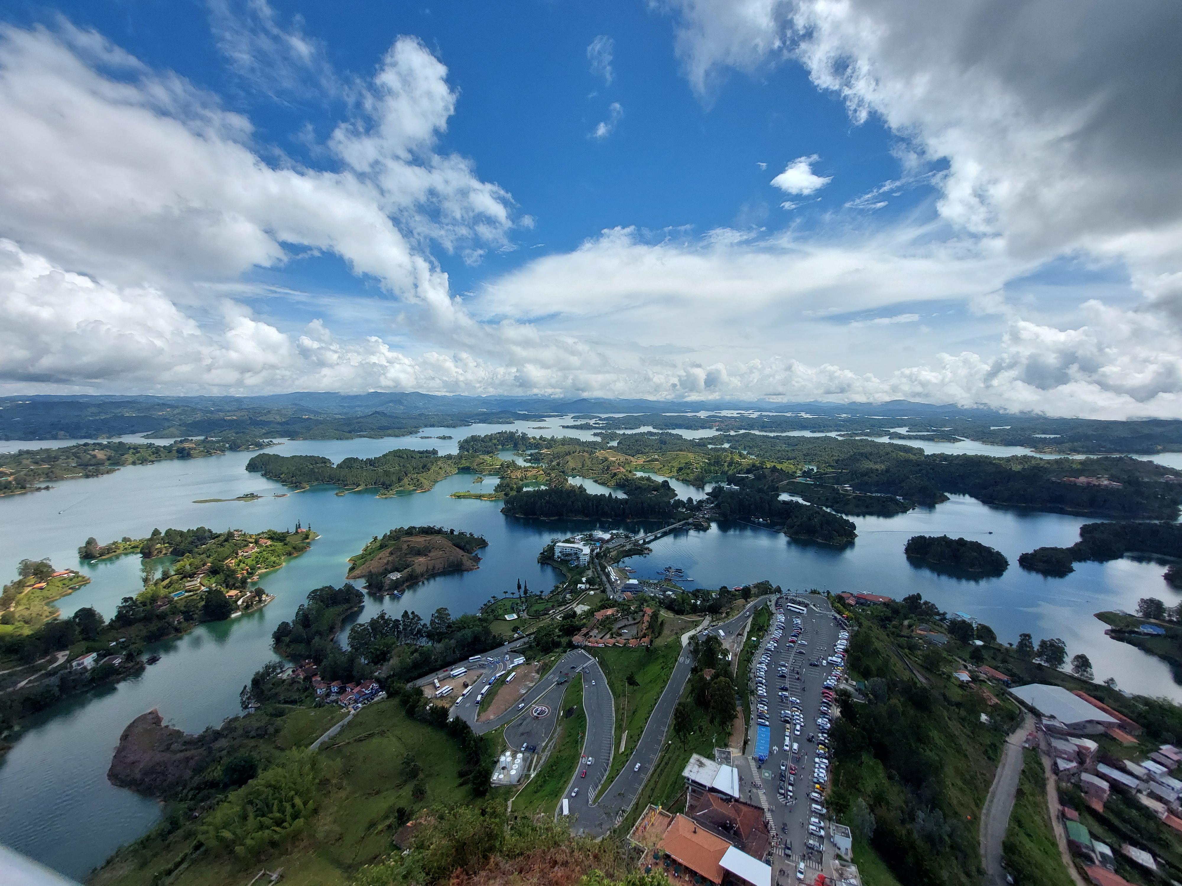 Frisch gestärkt geht es weiter nach El Peñol – oder besser gesagt Neu El Peñol. Die ursprüngliche Stadt wurde nämlich in den 70ern aufgegeben um an ihrer Stelle ein Wasserkraftwerk zu errichten. Rund 4000 Menschen wurden damals umgesiedelt. Wir stoppen kurz an einem Brunnen im Zentrum des Ortes bevor es zur Hauptattraktion des Tages geht – dem Piedra de Peñol.