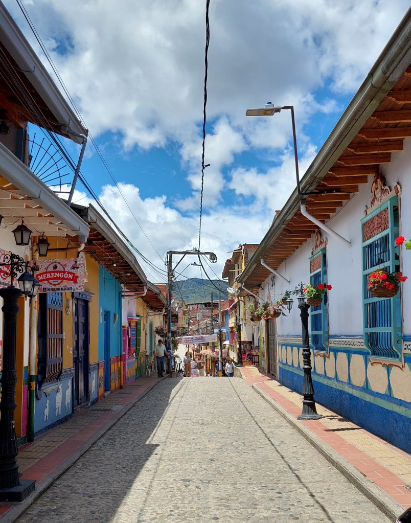 Eine Besonderheit in Guatapé sind die Zócalos. So werden hier die bunten Dekorationen an den Hausmauern genannt. Auch abseits davon ist Guatapé sehr farbenfroh und ein tolles Fotomotiv. Nachdem wir das Zentrum erkundet haben geht’s zum Mittagessen, es gibt traditionell Reis mit Bohnen, Kochbanane und ein Protein zur Auswahl.