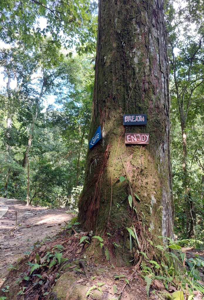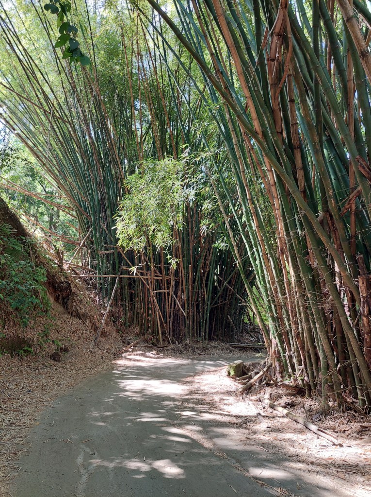 Ich habe bei meiner Wanderung zwar einige Vögel gehört, allerdings keine zu Gesicht bekommen. Dafür findet man unterwegs immer wieder Bambus, der hier oft als Baumaterial verwendet wird. Nachdem es regelmäßig regnet ist der Weg teilweise gatschig, teilweise muss man auch über ein paar Steine balancieren um nicht nass zu werden.