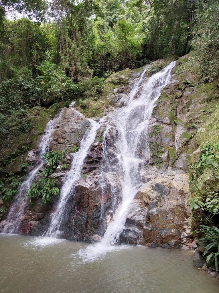 Während der zweite Wasserfall etwas höher ist, lädt er nicht wirklich zum Baden ein. Anders der erste Wasserfall, wo ein etwa 1,20 Meter tiefer Pool Platz für etliche Besucher bietet.