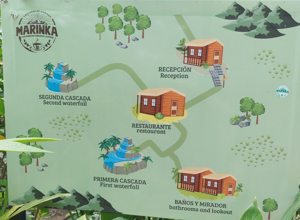 Der Ortskern von Minca liegt auf rund 600 Metern Seehöhe, einige Teile der Region liegen aber um einiges höher, bis auf über 3000 Meter geht es hinauf. Kombiniert man das mit den Bächen und Flüssen, welche die Gegend durchkreuzen, findet man zwangsläufig einige Wasserfälle. Einer, oder eigentlich drei davon, sind die Marinka-Wasserfälle, denen ich einen Besuch abgestattet habe.