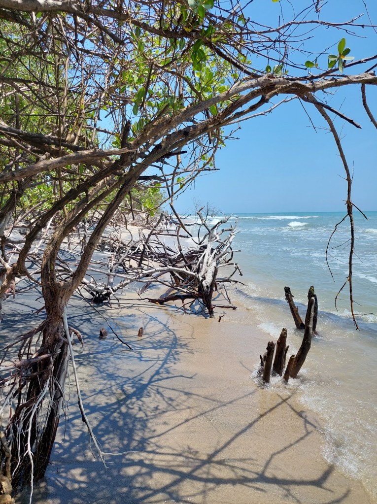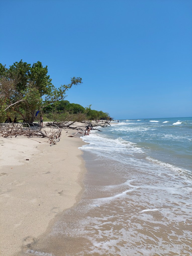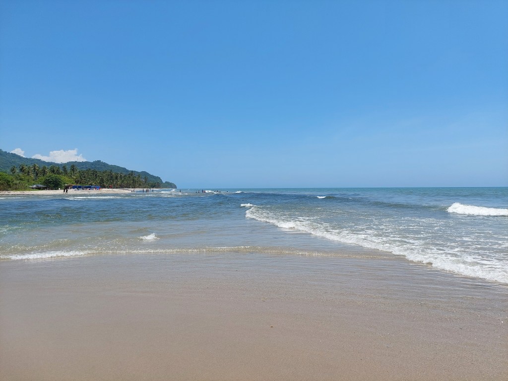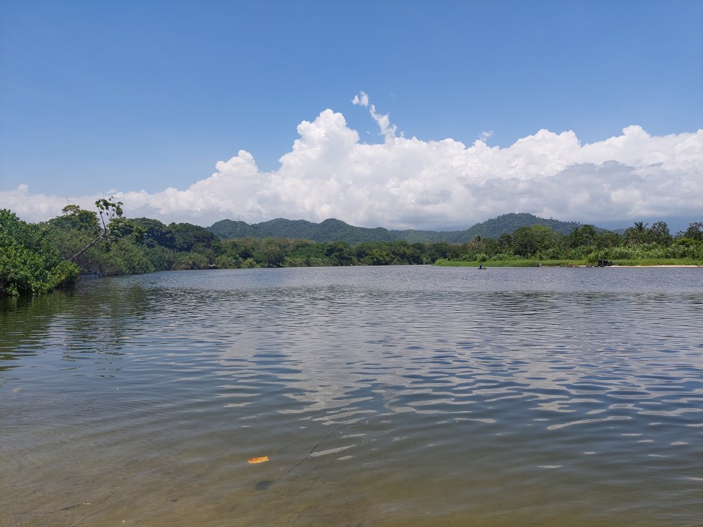Hier am Strand, mit kaum anderen Menschen in der Nähe, fühlt man sich wie auf einer einsamen Insel. Nach etwa einer halben Stunde Spaziergang kommt man an der Flussmündung an, hier gibt es einige kleine Restaurants, welche hauptsächlich Meeresfrüchte anbieten. Spannend ist auch der Temperaturunterschied zwischen Fluss und Meer – der Rio Palomino ist um einige Grad kälter als das karibische Meer.
