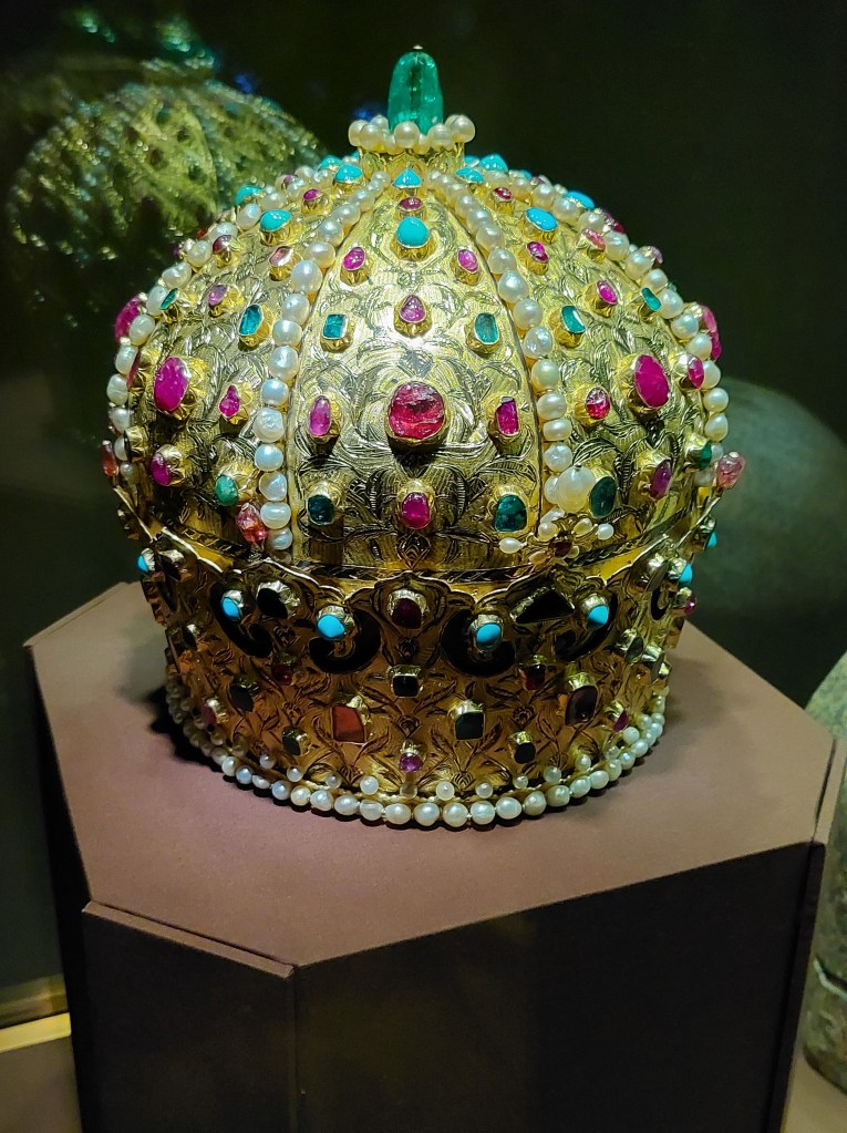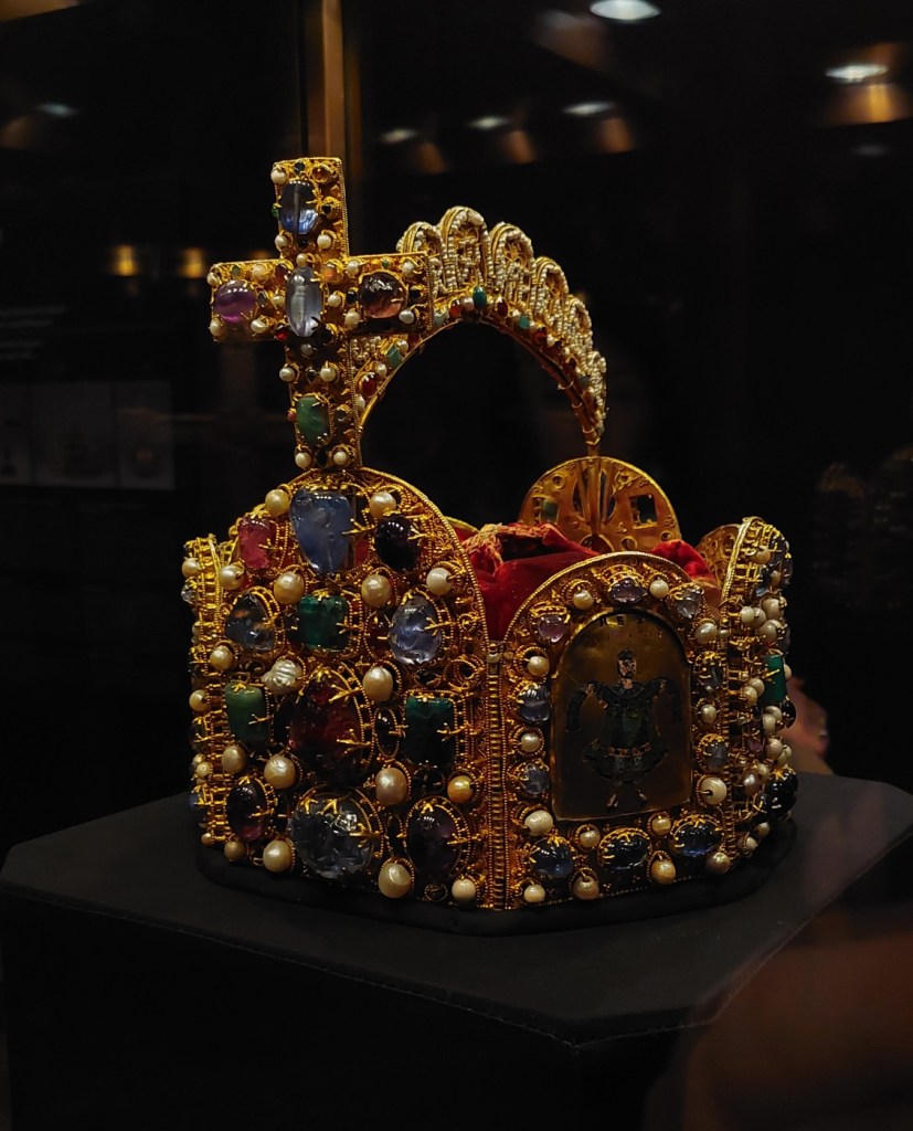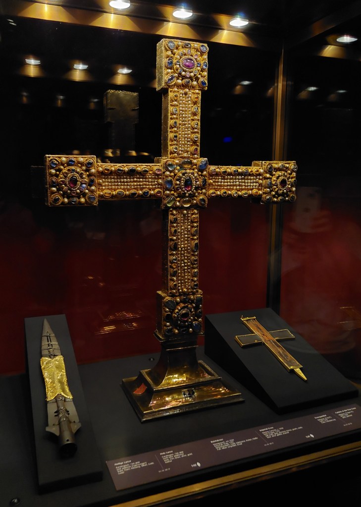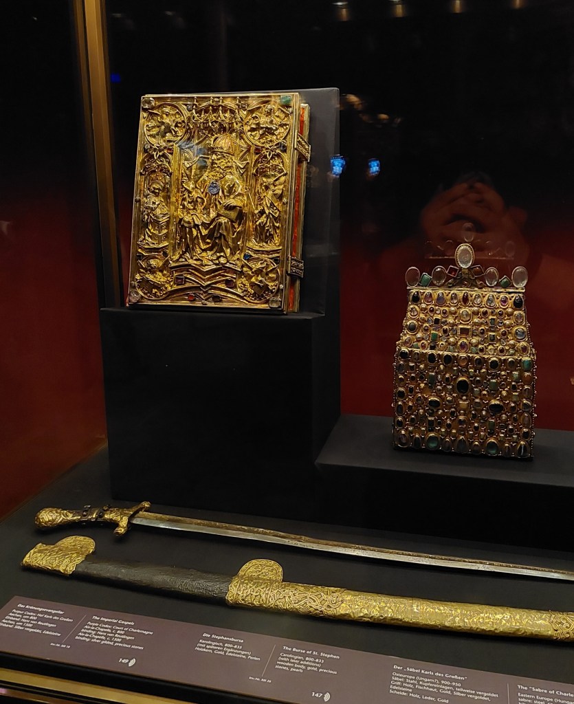 Weiter geht es mit einem Abstecher in die geistliche Schatzkammer, welche mit christlichen Antiquitäten aus der Barockzeit gefüllt ist. Schließlich erreichen wir die Reichskleinodien des Heiligen Römischen Reiches, wo einige der ältesten Teile der Ausstellung zu finden sind. Allen voran die Reichskrone, welche auf das 10 Jahrhundert datiert wurde und somit rund 1000 Jahre alt ist.