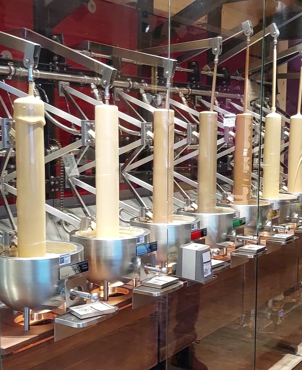 Nach dem Film geht’s dann los und wir bekommen das wichtigste Utensil für die nächsten Stunden ausgehändigt – den Löffel. Mit ihm können alle Köstlichkeiten probiert werden. So bewaffnet geht es erstmals hinunter zur ersten Station. Hier gibt es die frisch gerösteten Kakaobohnen aus den unterschiedlichen Anbaugebieten zu kosten. Ohne Zucker sind diese zwar relativ bitter, dennoch spannend das man bereits hier große Unterschiede im Geschmack ausmachen kann.
