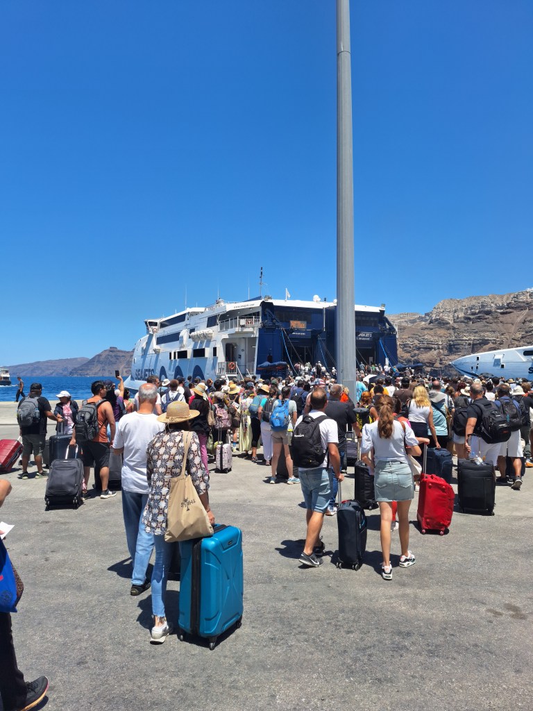 Aber von Anfang an. An unserem letzten Tag auf Santorini begeben wir uns zum Hafen. Von hier aus geht’s mit der Seajets Fähre nach Naxos. Unser Mietauto haben wir vorher zurück gegeben. Die Überfahrt dauert rund 90 Minuten, auf der riesigen Fähre merkt man kaum, das man sich am Wasser befindet.