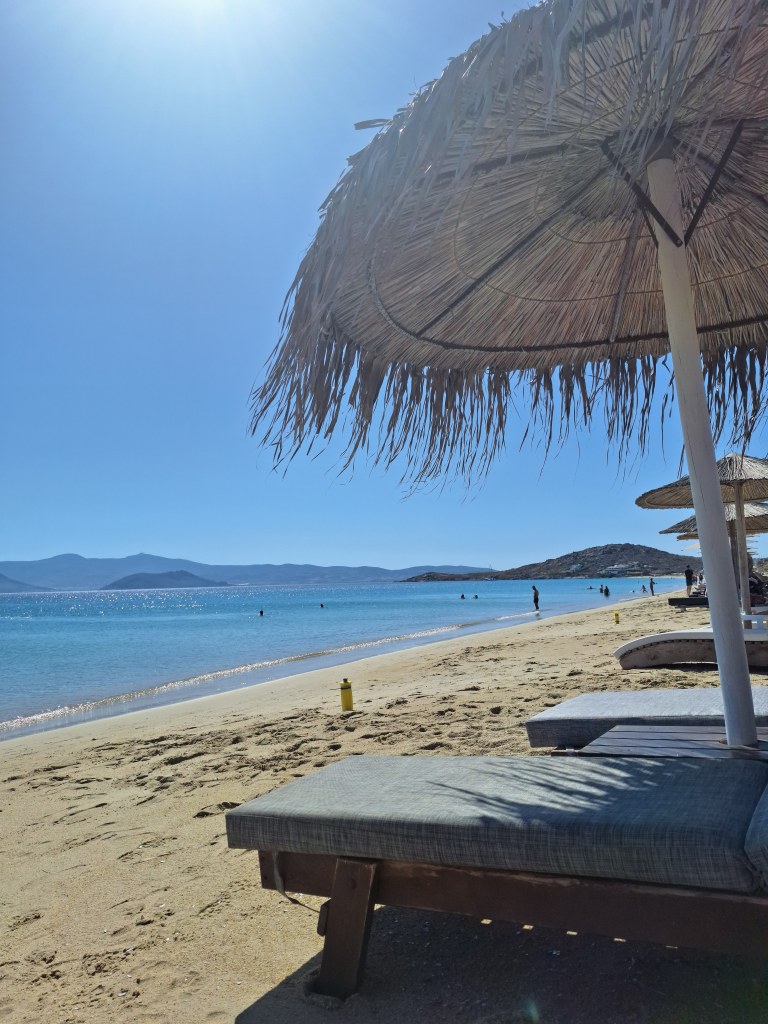 Das Meer ist hier kristallklar, aber auch noch etwas frisch. Im Gegensatz zu Santorini sind die Strände von feinem Sand bedeckt und laden zum Entspannen ein.