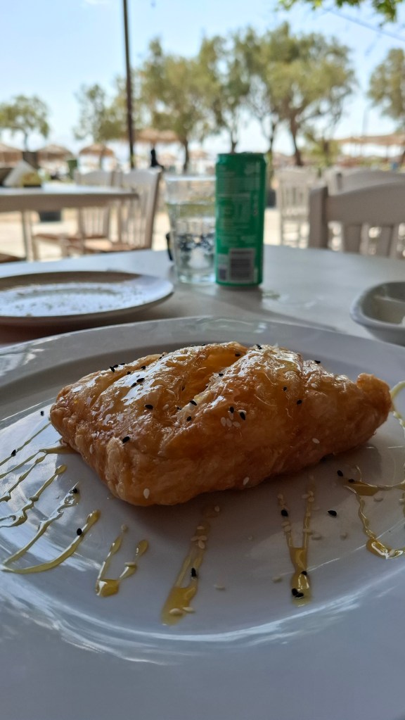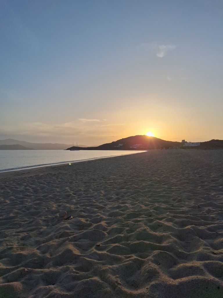 In Naxos angekommen schnappen wir uns ein Taxi zu unserer Unterkunft – einem kleinen Familienhotel direkt am Strand. Dem statten wir auch sofort einen Besuch ab. In der Vorsaison sind die Liegen und Sonnenschirme in den Strandbars sogar noch gratis, solange man etwas konsumiert. So verbringen wir den Rest des Tages dort.