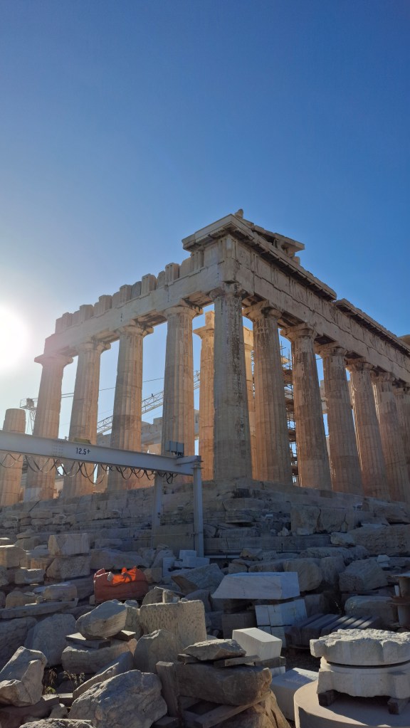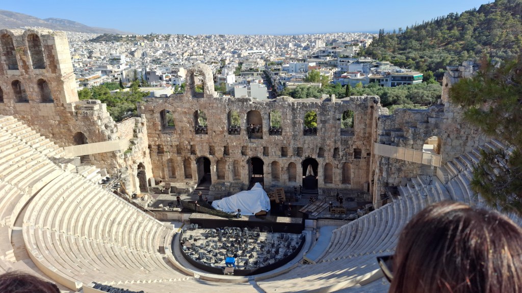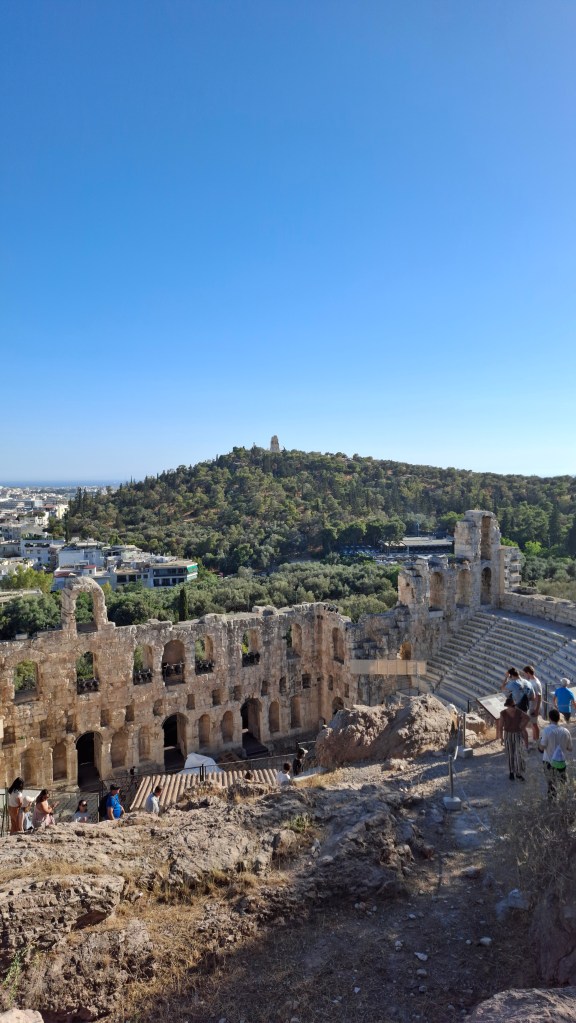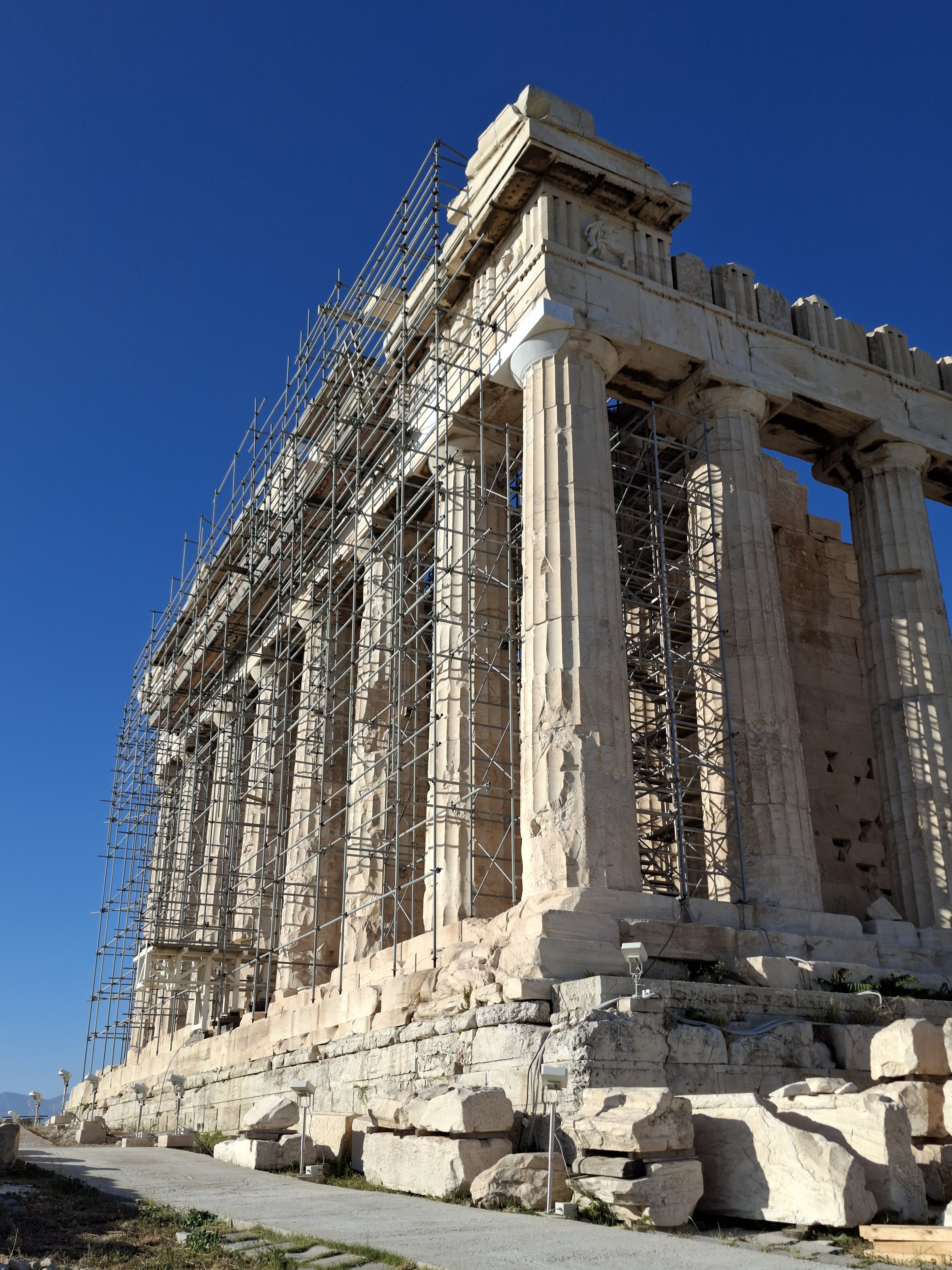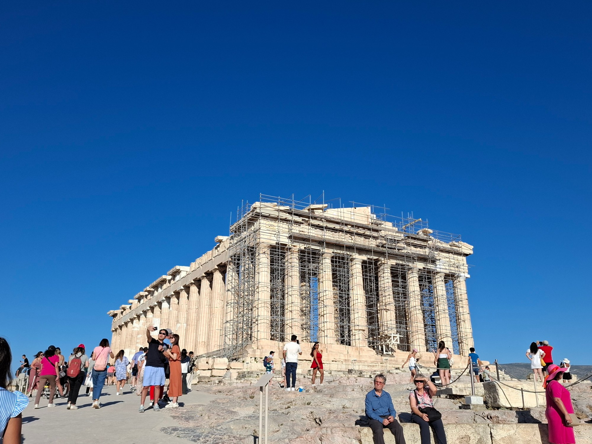 Unser erster Stop ist am Odeon des Herodes Atticus. Dieses gut erhaltene Theater bietet für rund 5000 Menschen Platz und wird auch heute noch regelmäßig für Vorstellungen genutzt. Vorbei am Tempel der Nike geht es dann ins Zentrum der Akropolis. Hier wird alles vom Parthenon überstrahlt. Dieser, der Göttin Athene gewidmete Tempel, thront hier seit bereits 2500 Jahren über der Stadt.