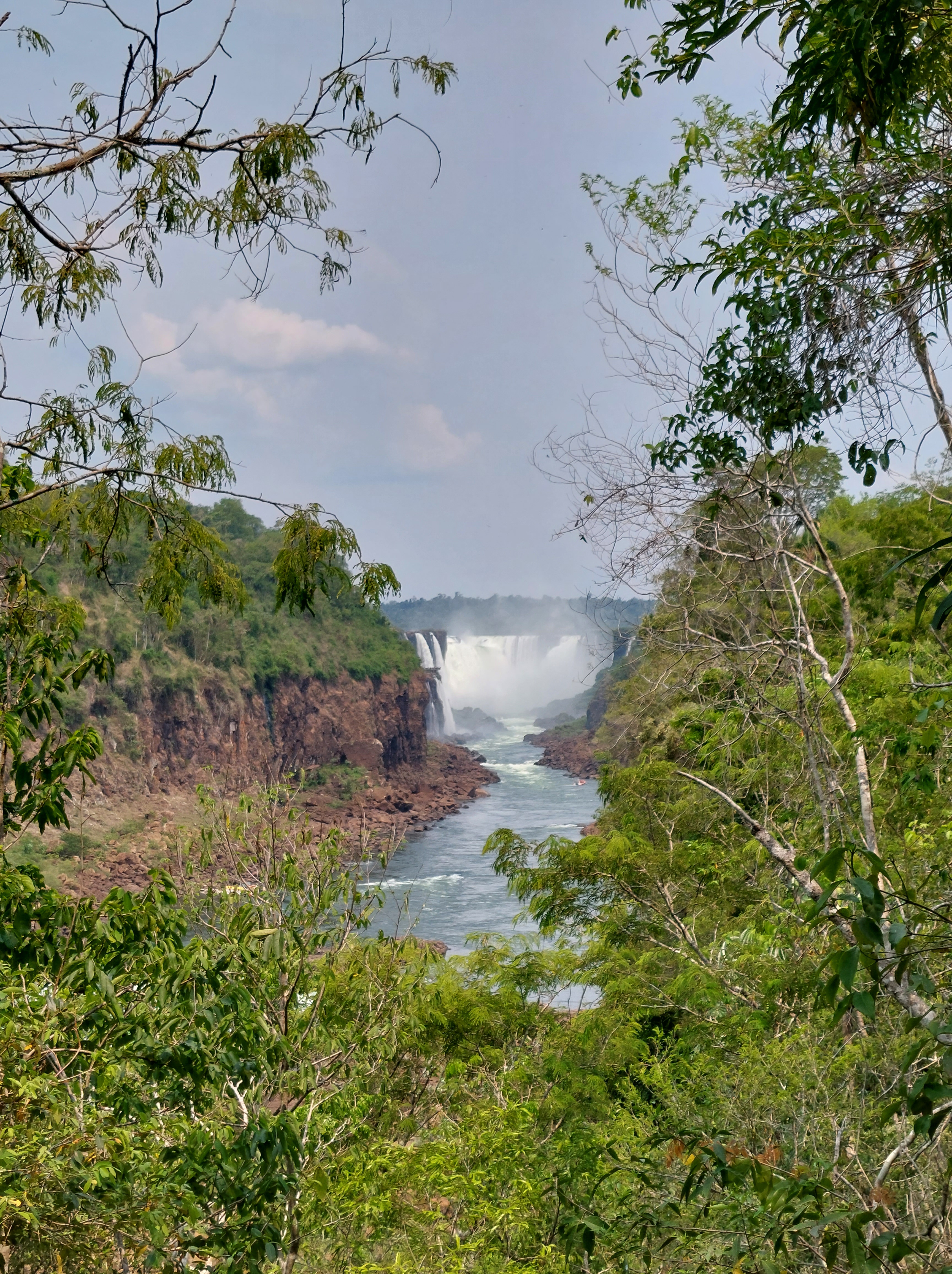Heute starte ich mit dem oberen Rundweg, der eine andere Perspektive auf die Wasserfälle von gestern bietet. Sieht man den ruhigen und sehr seichten Zufluss, ist es schwer zu glauben wie imposant die Wasserfälle von unten aussehen. Im der Ferne lässt sich von hier aus auch der brasilianische Park sehen.