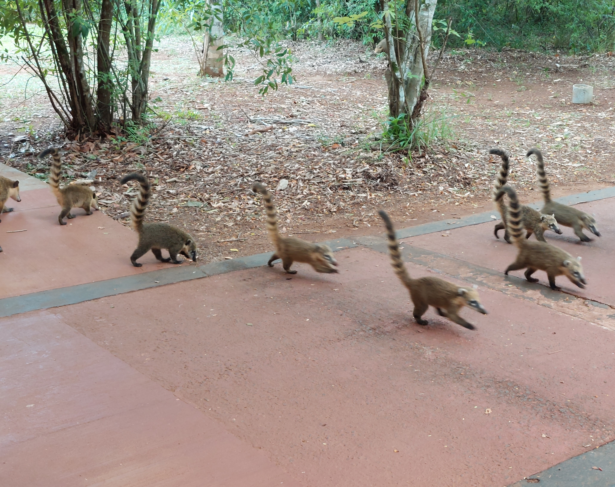 Auf dem Rückweg läuft mir mal wieder eine Nasenbärfamilie über den Weg. Nachdem die Warteschlange für den Zug zurück ewig lang ist, entscheide ich mich die drei Kilometer zum Eingang zu Fuß zurück zu spazieren. Dann hatte ich eigentlich noch vor eine Tour mit dem Schlauchboot bis ganz zu den Wasserfällen zu machen – leider hat das Tourunternehmen aber schon geschlossen. So mache ich mich trocken zurück auf den Weg in nach Puerto Iguazú und bereite mich auf den nächsten Tag vor, wenn ich Argentinien verlassen und nach Brasilien reisen werde.