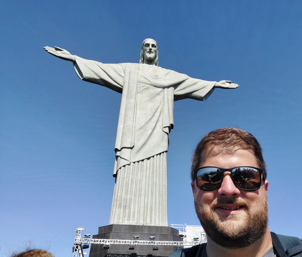 Die Rückseite der Statue Der Corcovado samt Statue befindet sich im Tijuca-Nationalpark, welcher die grüne Lunge von Rio de Janeiro ist. Um zur Christusstatue zu kommen gibt es viele Optionen. Man kann einen der Wanderwege im Park nutzen, mit dem Bus anreisen oder die spektakuläre Aussicht mit der Corcovado Bergbahn genießen. Ich bin mit der ersten Zahnradbahn des Tages, welche vom Startpunkt rund 20 Minuten bis zum Gipfel braucht, gefahren. Von der Bergstation sind es dann noch ein paar Stufen bis man das Monument erreicht.