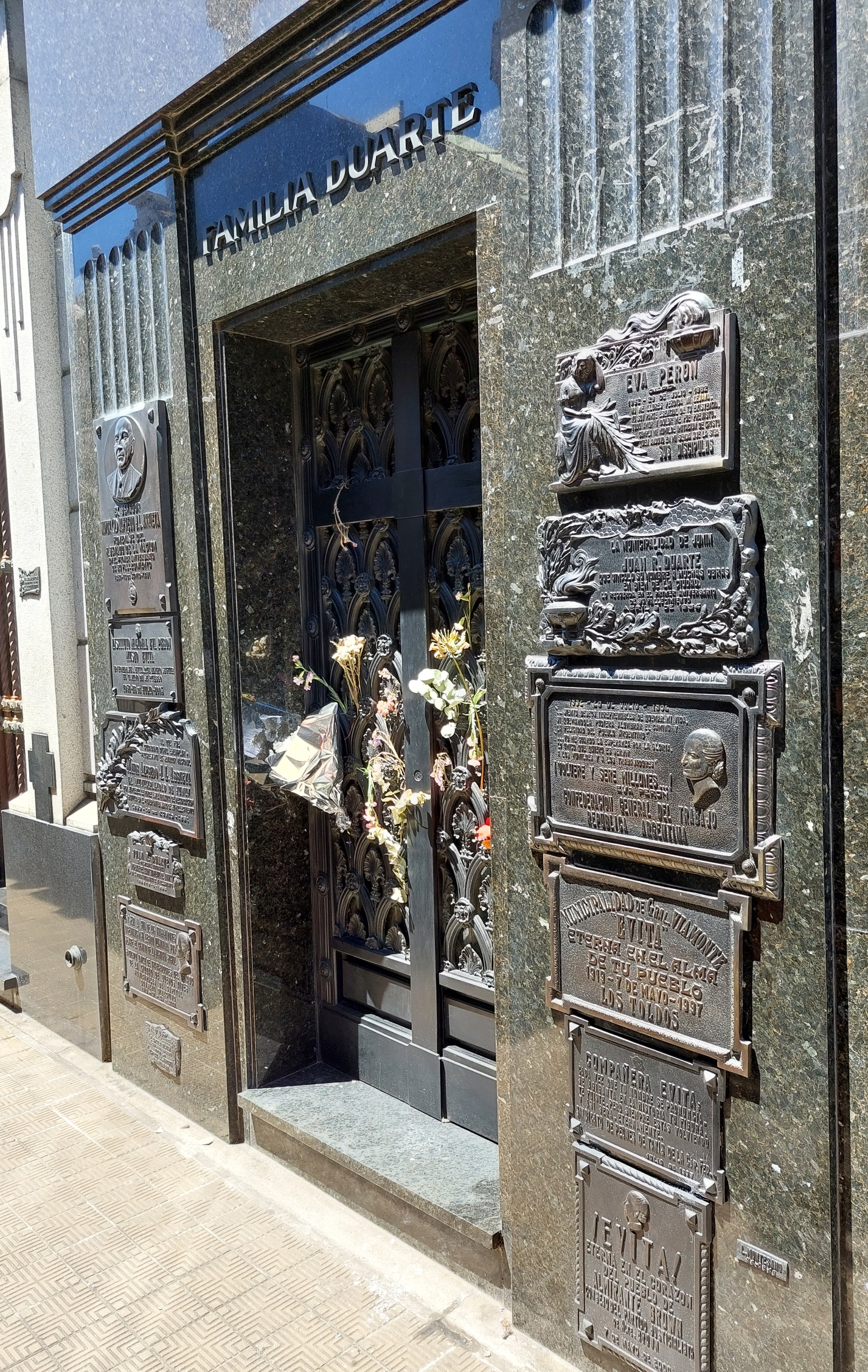 Palacio Barolo Ein paar Kilometer weiter nördlich im Stadtteil Recoleta findet man den gleichnamigen Friedhof – Cementerio de la Recolecta. Hier ruhen einige der wichtigsten Figuren der argentinischen Geschichte in imposanten Grabmälern. Unter ihnen auch Eva Perón, die ehemalige First Lady Argentiniens. War ihr kurzes Leben bereits außergewöhnlich, so setzt ihr Tod und was danach passierte noch einen drauf. Einbalsamiert und in einem Glassarg zur Schau gestellt, nach einem Militärputsch nach Europa entführt und unter falschem Namen in Mailand bestattet, sowie nach 21 Jahren wieder nach Buenos Aires überführt und in der Familiengruft beigesetzt. Der Grund dafür – die enorme beliebtheit von Evita war und ist vielen politischen Gegnern ein Dorn im Auge.